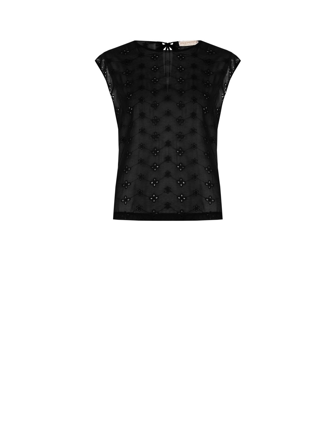 Top de corte suave, leve na pele e concebido para acompanhar a silhueta com naturalidade. Em georgette transparente com bordado floral por toda a peça, tem decote redondo e fecho em gota com cordão nas costas. Perfeito do escritório ao aperitivo, com elegância versátil.