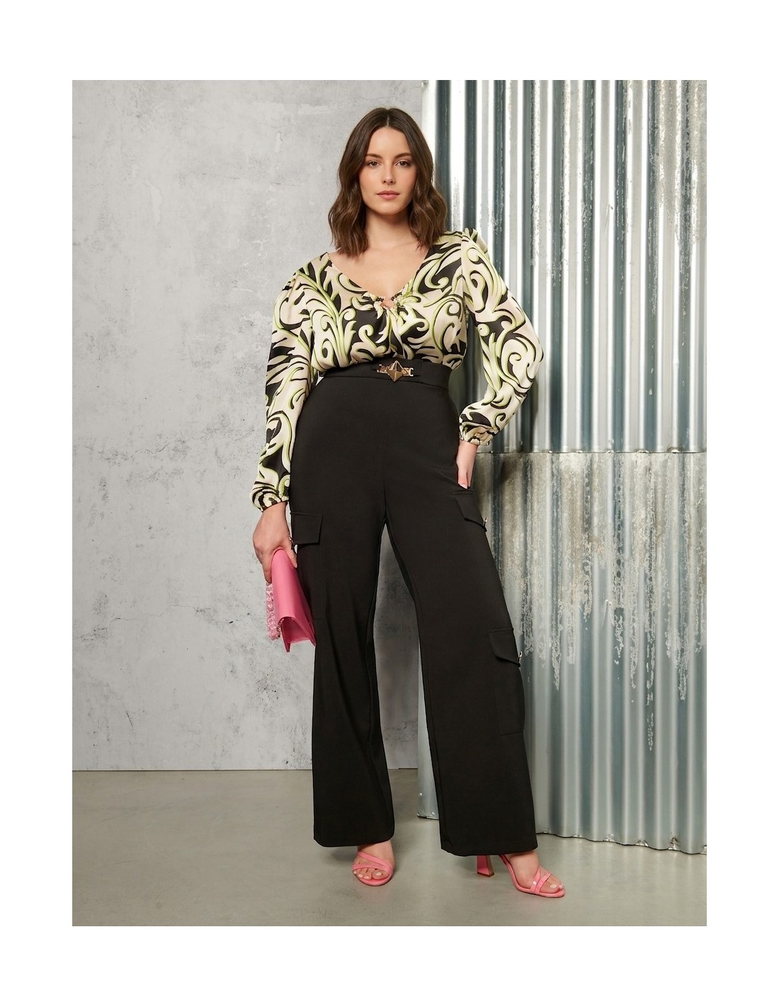 Blusa Curvy cintada em cetim estampado com anel metálico no decote Rinascimento Curvy