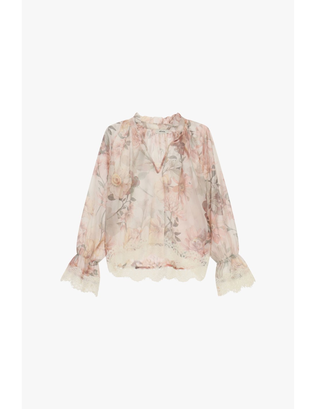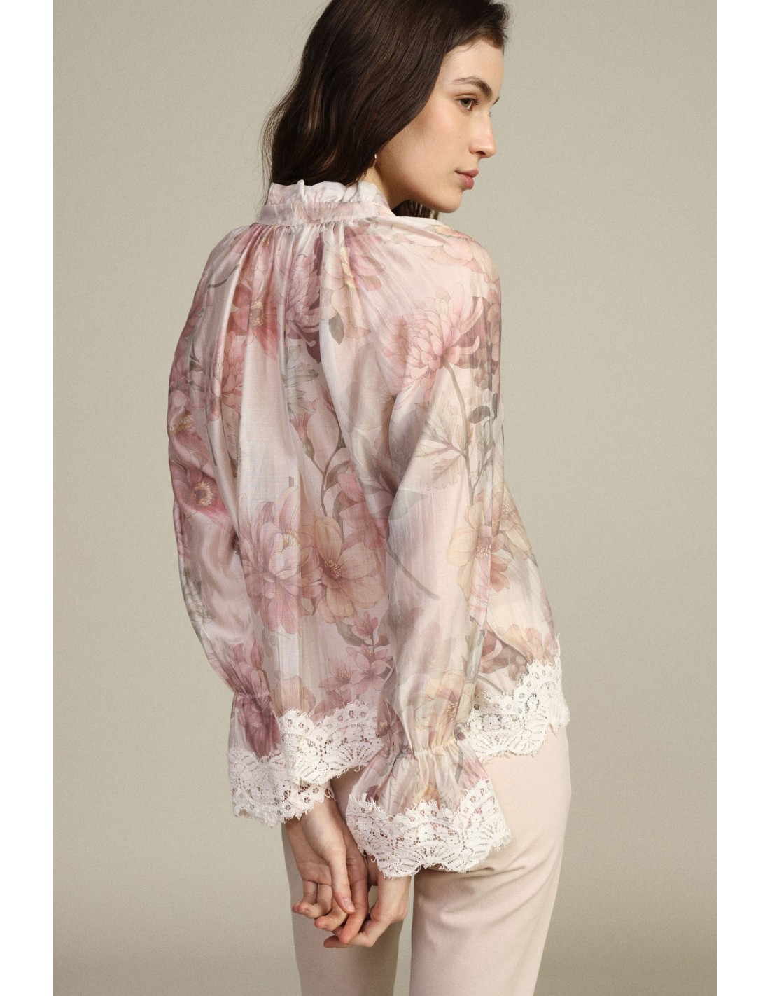 Blusa Floral Com Ribetes Em Renda E Mangas Amplas Dixie