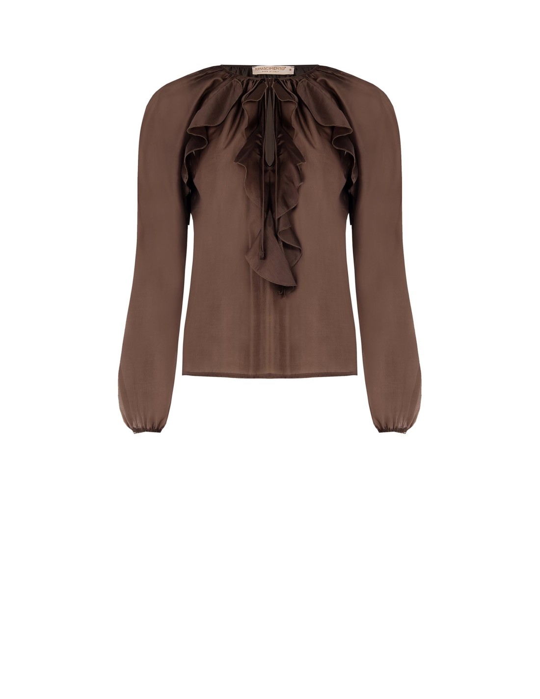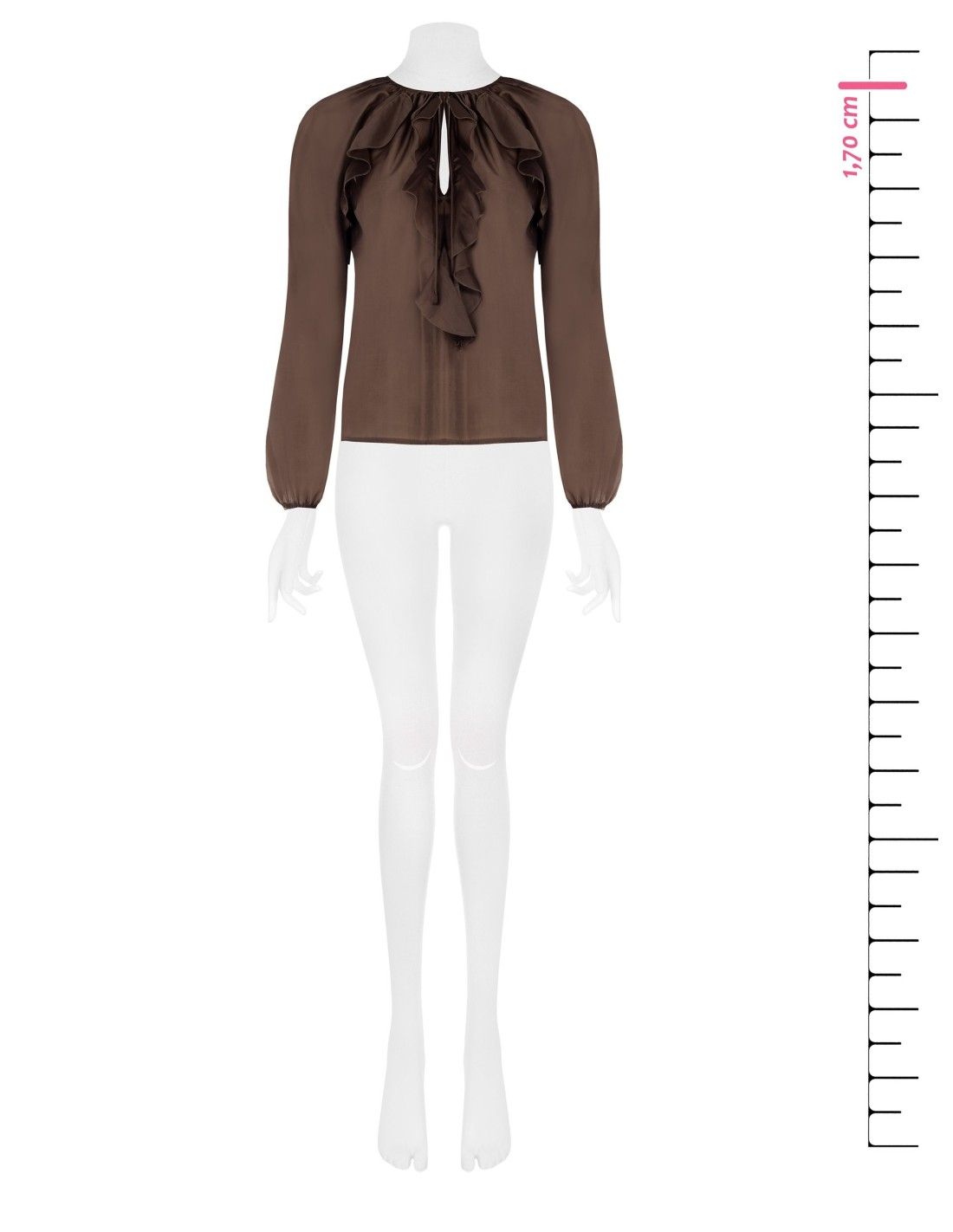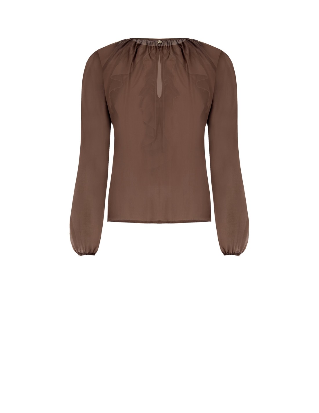 Blusa em tecido leve semitransparente com folhos Rinascimento