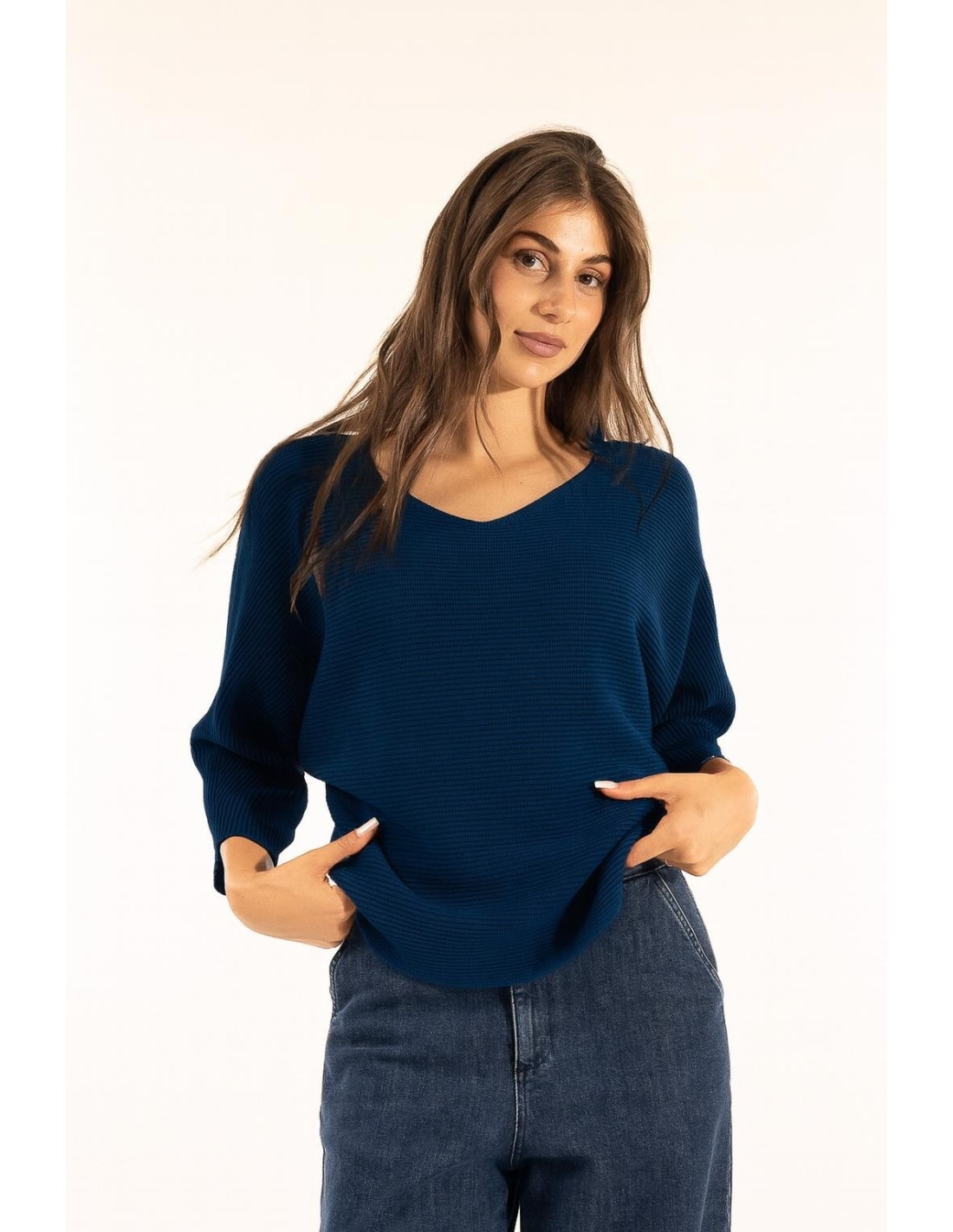Camisola Kontatto com corte macio e fluido, que valoriza a silhueta com conforto. Malha em fino tricot canelado, leve e agradável na pele. Decote barco e mangas 3/4 alargadas para um uso descontraído. Perfeito para o escritório com calças de alfaiataria ou para o dia a dia com denim.