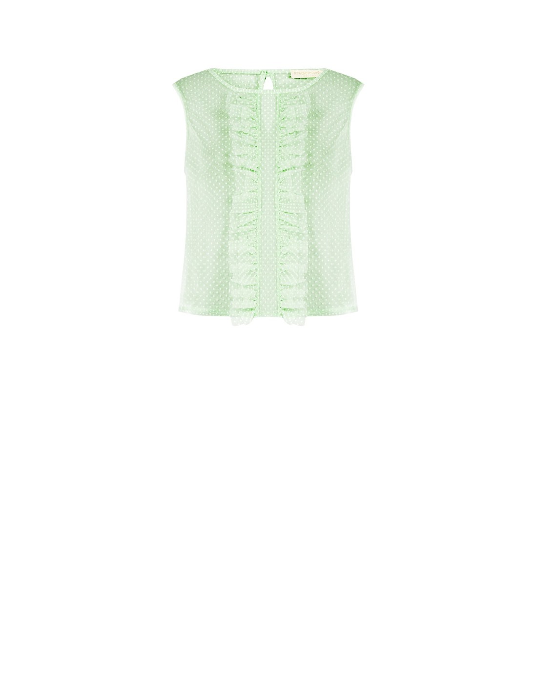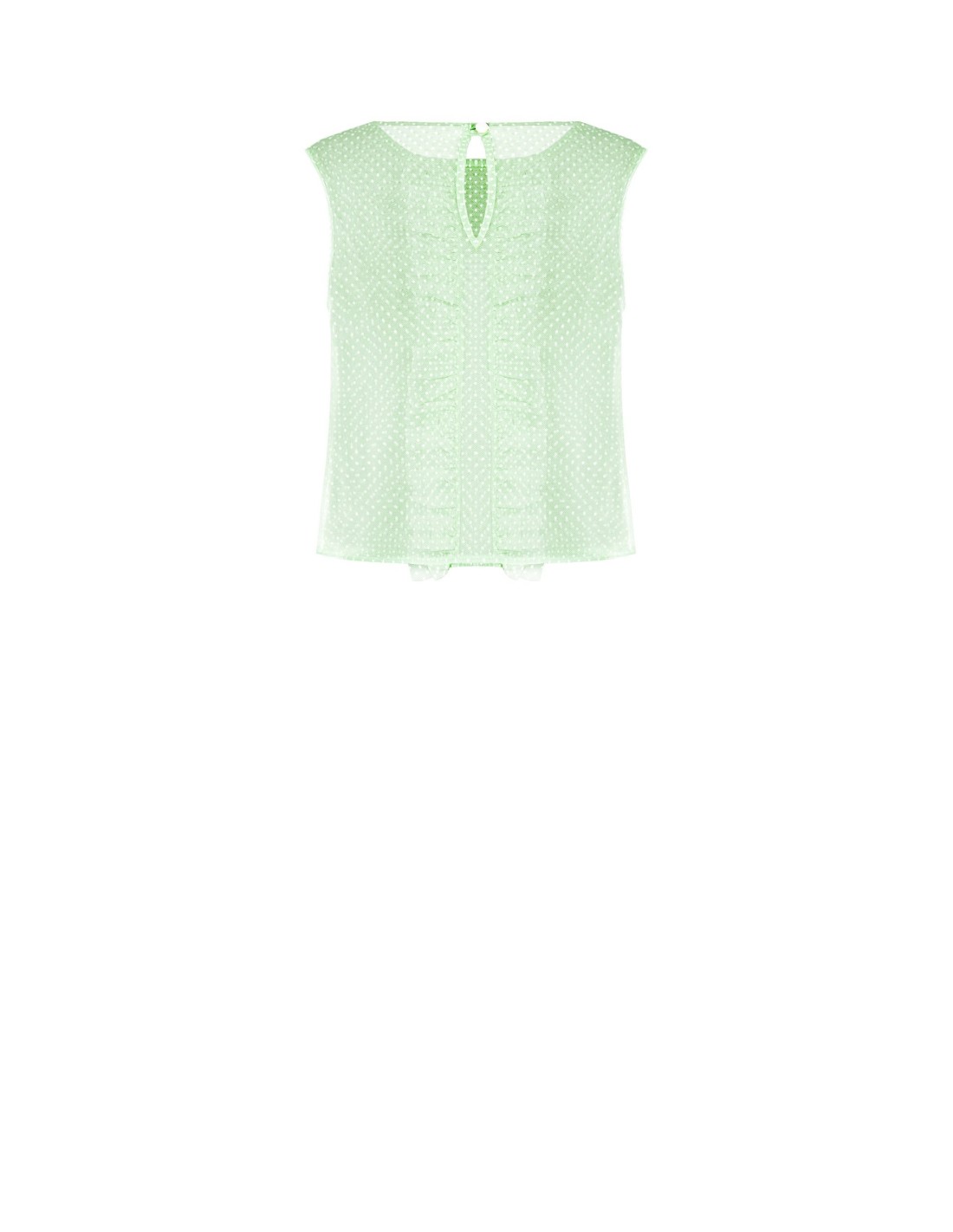Top leve de corte macio, em tule plumetis de textura impalpável que acaricia a silhueta com conforto. Os folhos frontais e o pequeno recorte com fecho na parte de trás acrescentam um toque requintado. Perfeito do escritório ao aperitivo, com blazer ou denim.