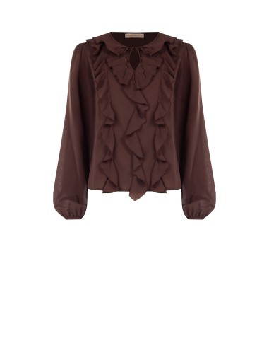 Top fluido com corte suave que valoriza a silhueta sem marcar. Voal leve com toque sedoso. Folhos frontais e decote em gota com cordões dão movimento; mangas amplas com punho elástico para conforto. Perfeito para escritório e aperitivo, fácil de combinar com denim ou alfaiataria.