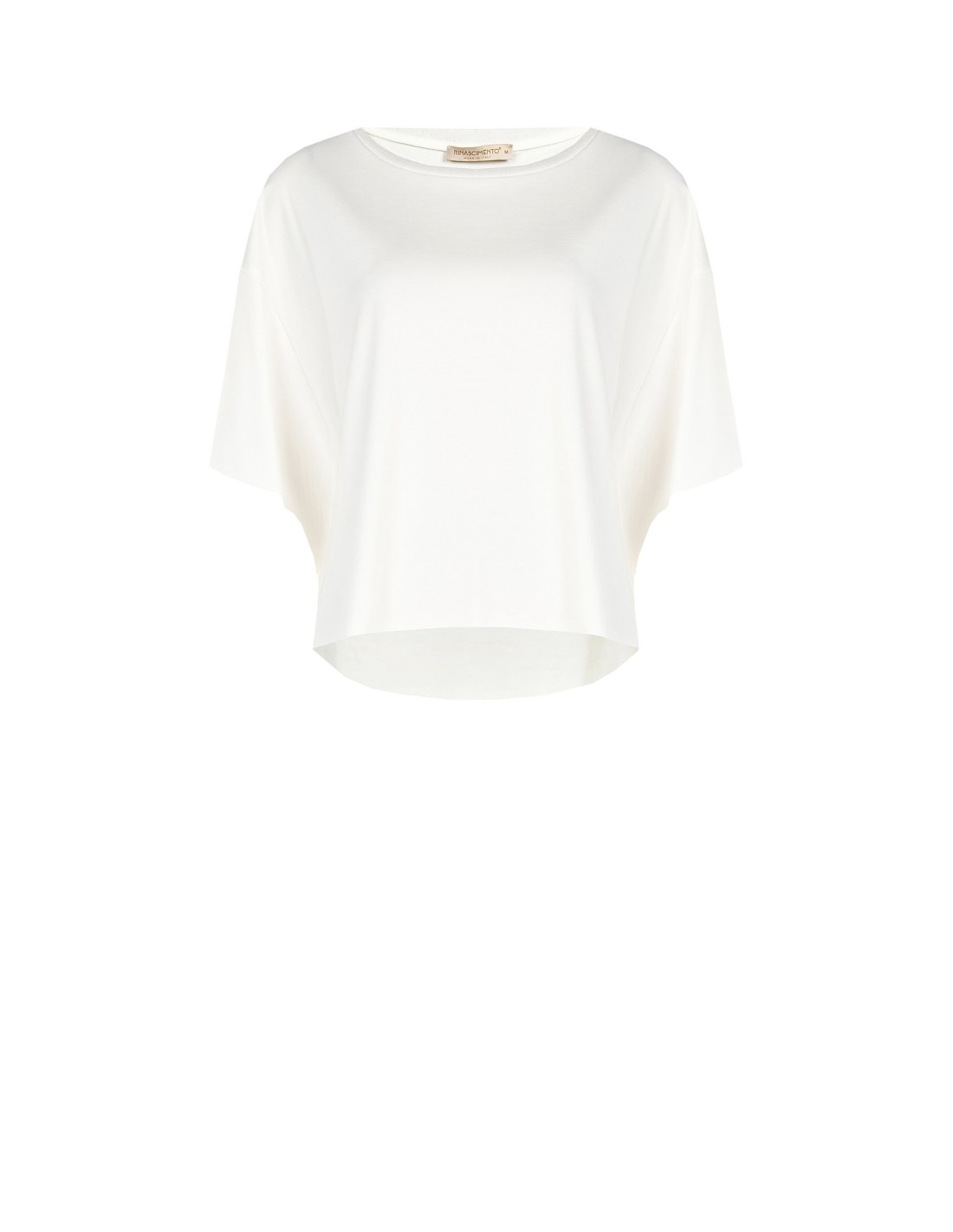 Top curto Rinascimento com um caimento macio e fluido, em jersey leve e sedoso que acaricia a pele. Decote redondo clean, ombro caído e pequeno logótipo metálico nas costas. Perfeito com denim ou alfaiataria para um look diário cuidado do escritório ao fim de semana.