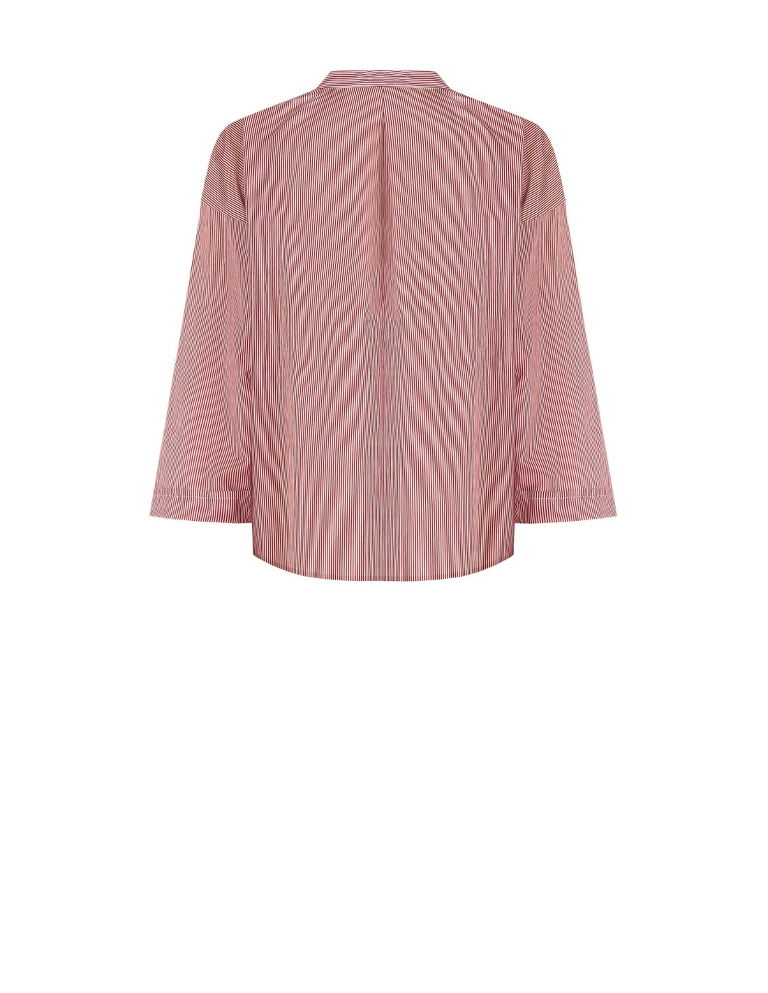 Top com caimento suave e feminino, em tecido leve com textura riscada que acaricia a silhueta com conforto. O decote em V com gola simples e o nó na bainha acrescentam carácter e alongam a figura. Perfeito para o escritório, para o tempo livre e para looks do dia a dia cuidados.