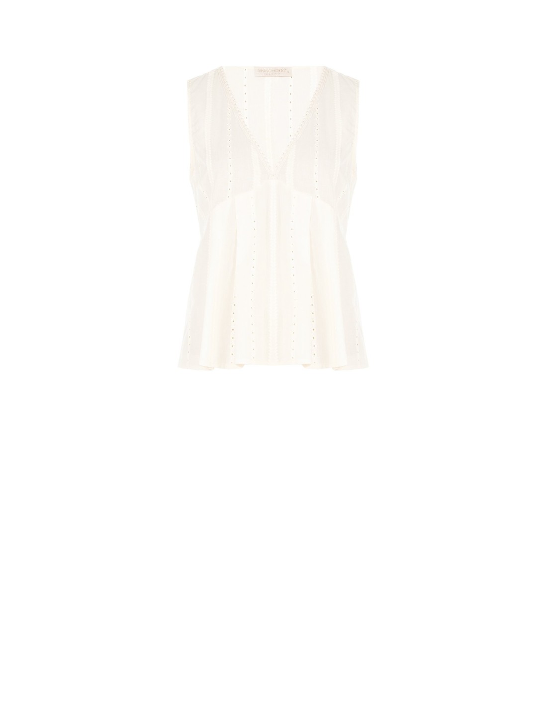 Blusa sem mangas de corte suave, em tecido leve e fresco com textura perfurada. O decote em V acabado e a cintura ligeiramente franzida valorizam a silhueta com naturalidade. Perfeita do escritório ao dia a dia, combina-se com facilidade para looks femininos e versáteis.