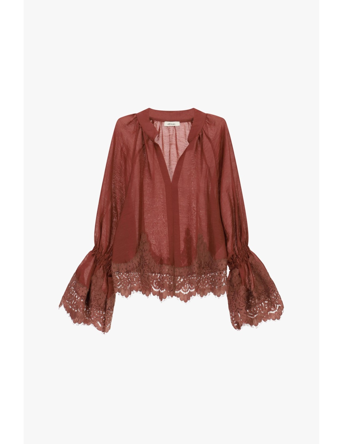 Blusa Transparente Com Mangas Amplas E Renda Dixie