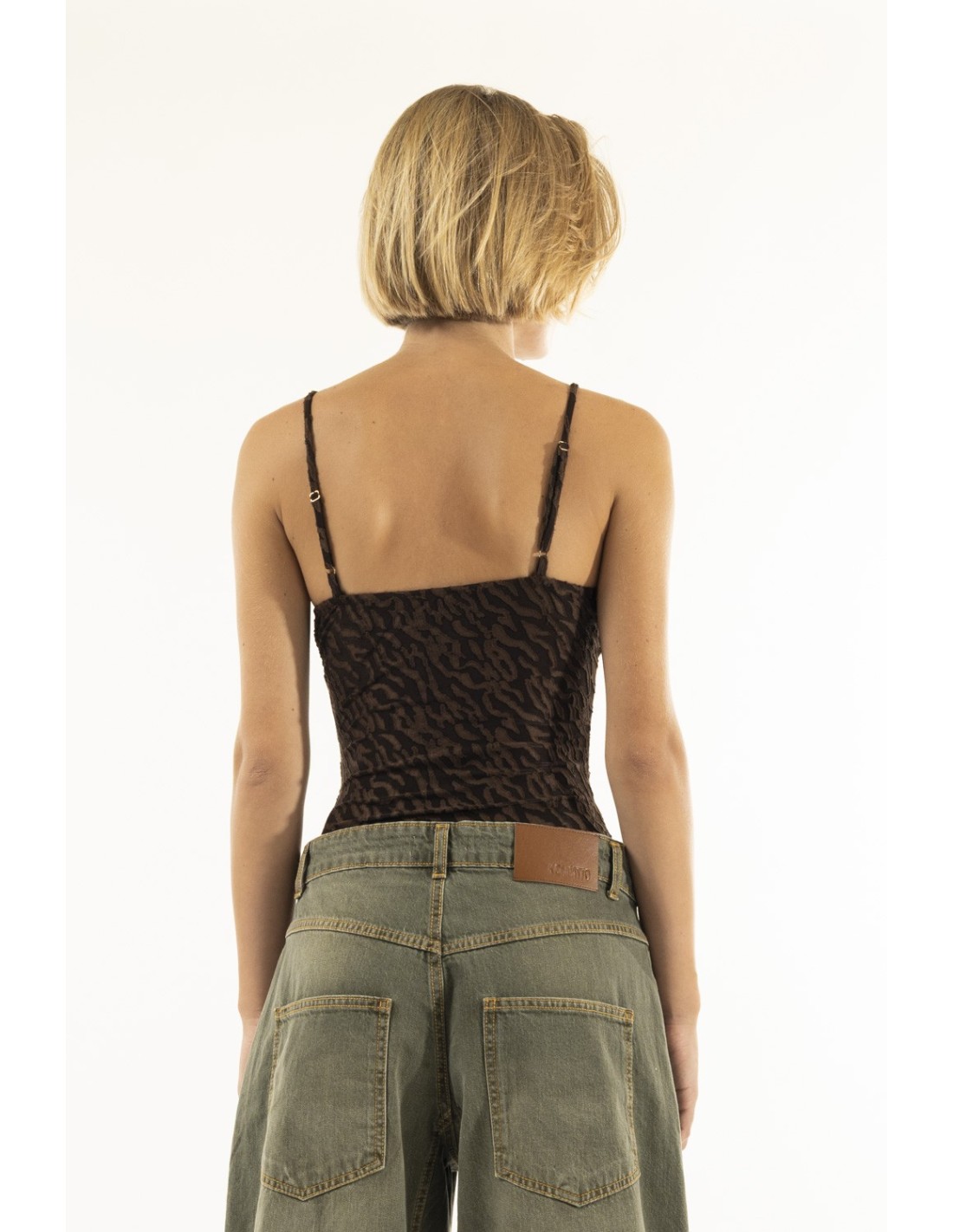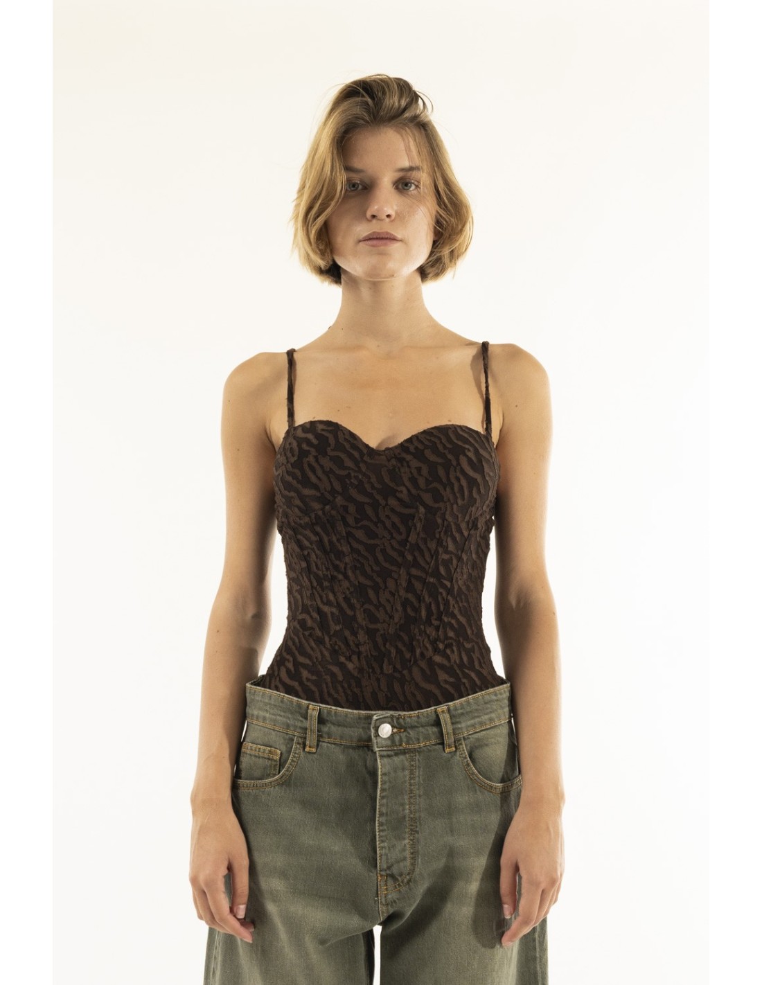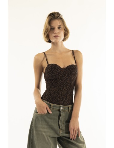 Kontatto assina uma peça justa que esculpe a silhueta com copas modeladas e alças reguláveis. Tecido stretch com textura animal print em relevo, suave na pele e modelador nos pontos certos. Decote em coração e cortes de alfaiataria valorizam o decote. Perfeito por baixo de um blazer para o escritório ou com denim para a noite.