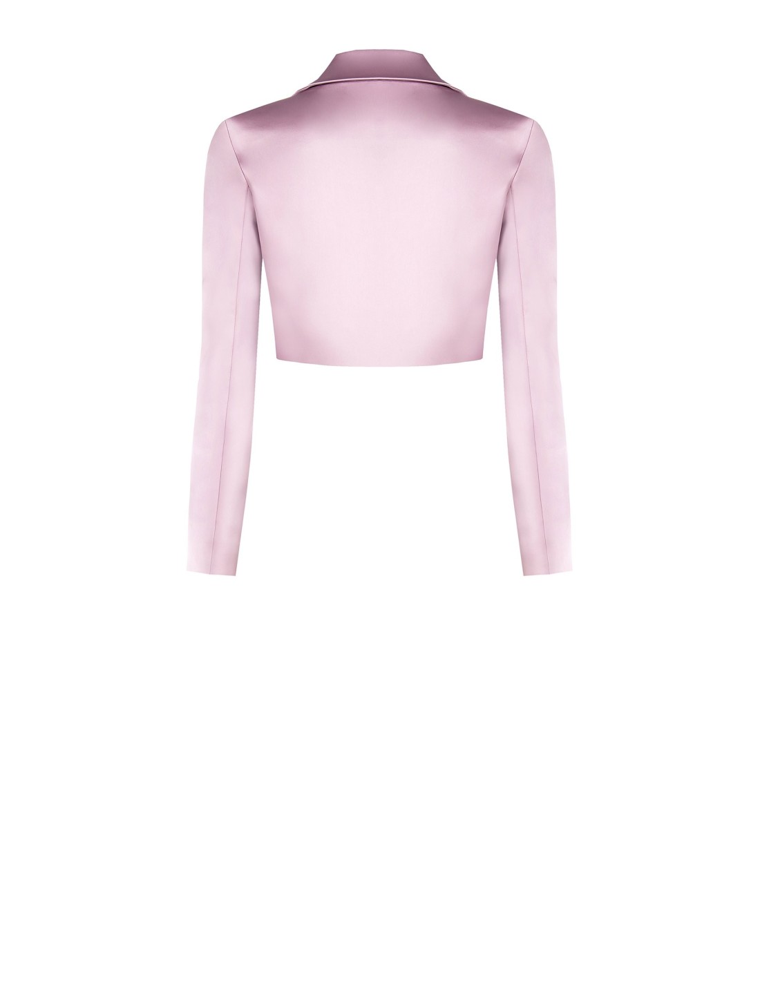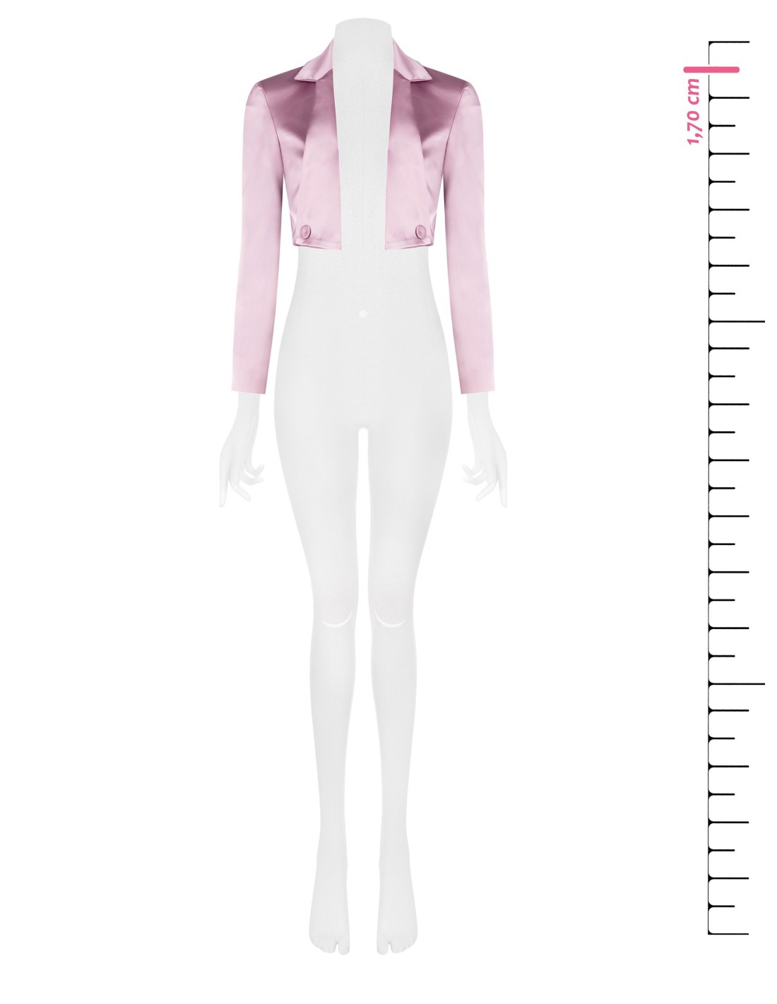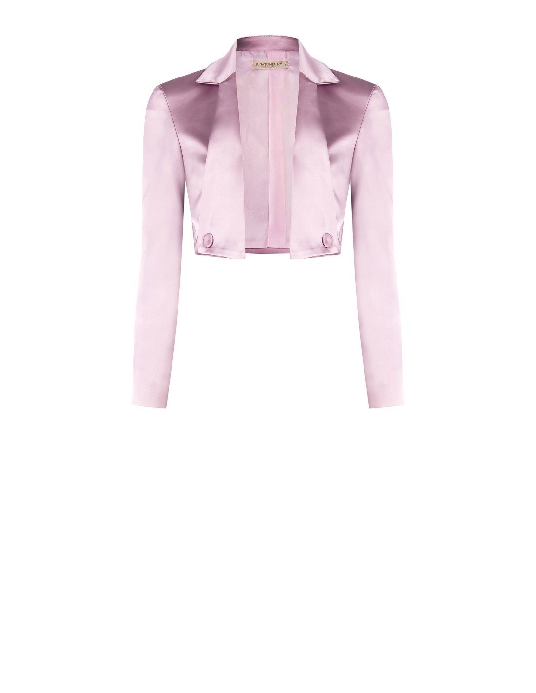 Cropped de corte justo que valoriza a cintura, assinado Rinascimento. Confeccionado em cetim liso e luminoso para um toque fluido e confortável. Revers clássicos, ombros estruturados e painéis frontais com botões decorativos. Perfeito sobre vestidos ou tops para cerimónias, festas e ocasiões especiais.