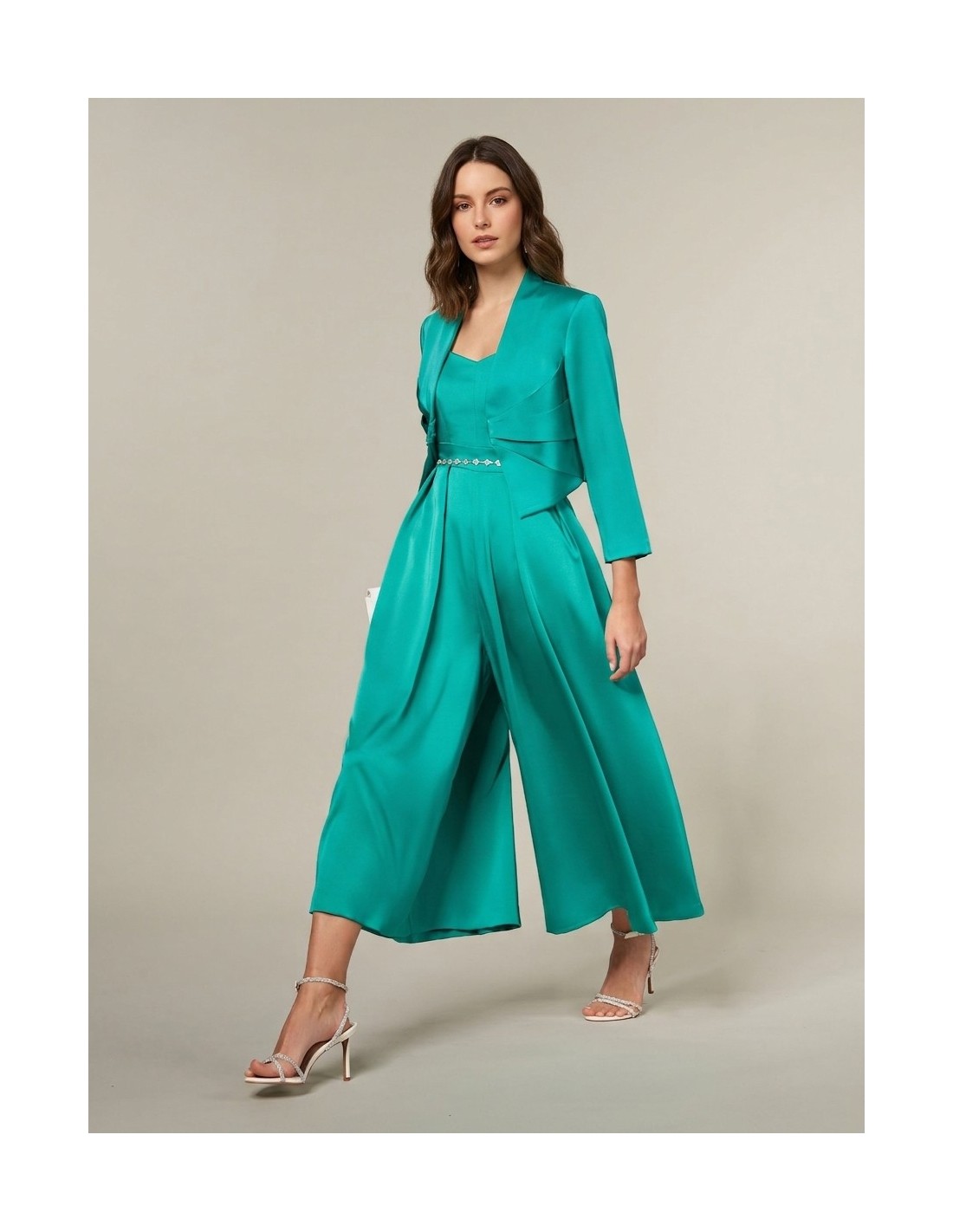 Casaco curto de corte justo, confeccionado em cetim com textura fluida e luminosa. O decote em V e os drapeados na frente valorizam a silhueta com leveza, enquanto o fecho discreto garante conforto. Perfeito sobre vestidos elegantes, para cerimónias, festas ou eventos especiais.