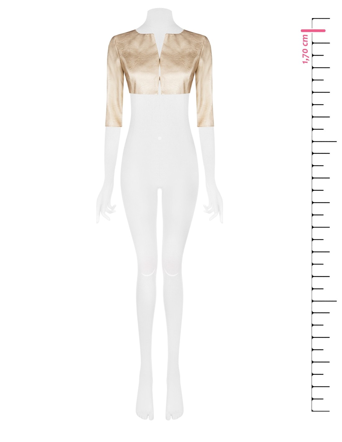 Bolero em pele ligeiramente enrugada, com fecho de gancho e fecho Rinascimento