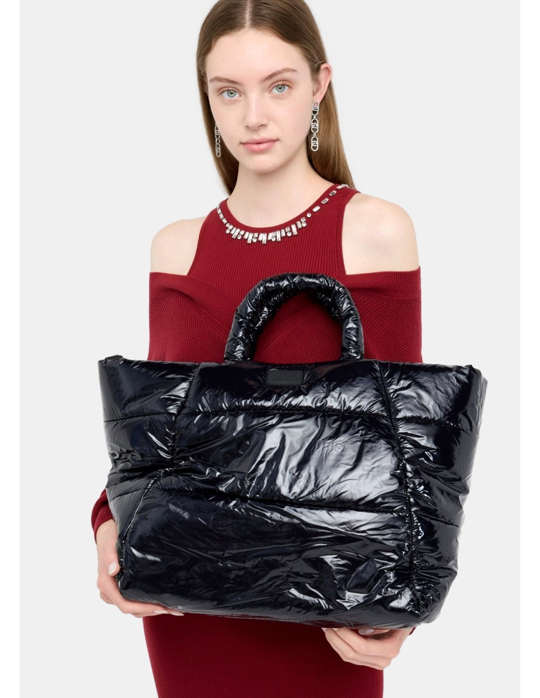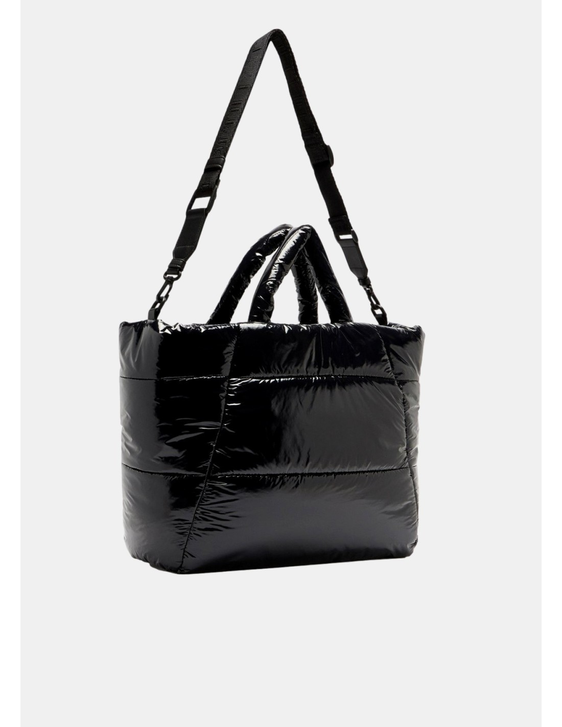 - Alça de ombro com logótipo, ajustável e removível em gros-grain