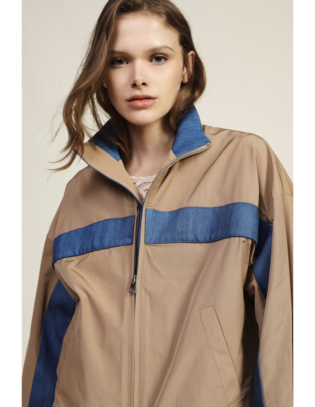 A silhueta confortável deste bomber envolve-te com um estilo original graças à faixa em contraste que atravessa a frente e as mangas. O fecho de correr central e os bolsos laterais tornam a peça prática para o dia a dia. Perfeito para quem procura um toque distinto mesmo em saídas informais.