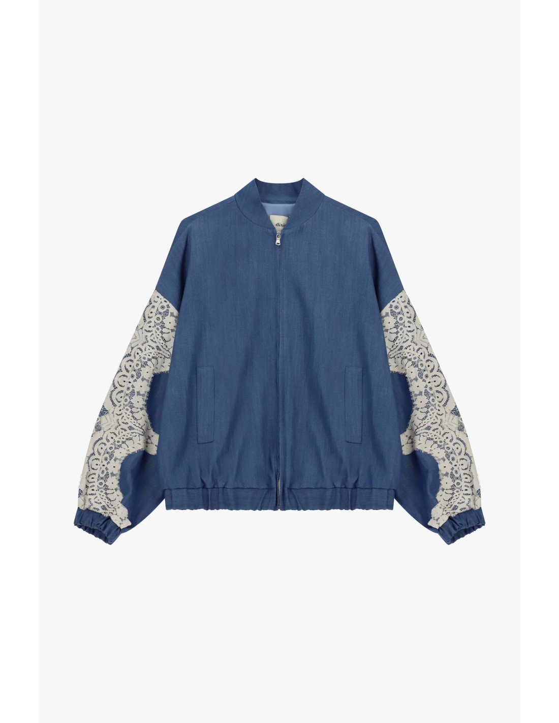 Deixa-te conquistar pelo bomber de corte descontraído com mangas enriquecidas por detalhes recortados que acrescentam um toque delicado e original. Prático graças ao fecho central e aos bolsos laterais, confere estilo e conforto todos os dias, perfeito para combinar com jeans ou vestidos leves.