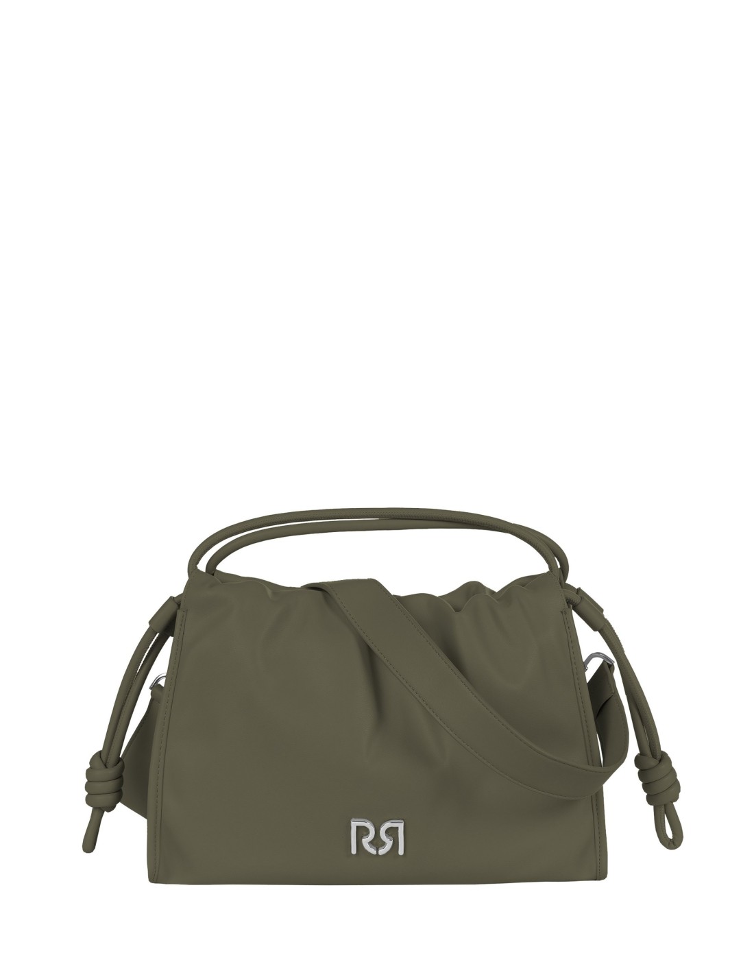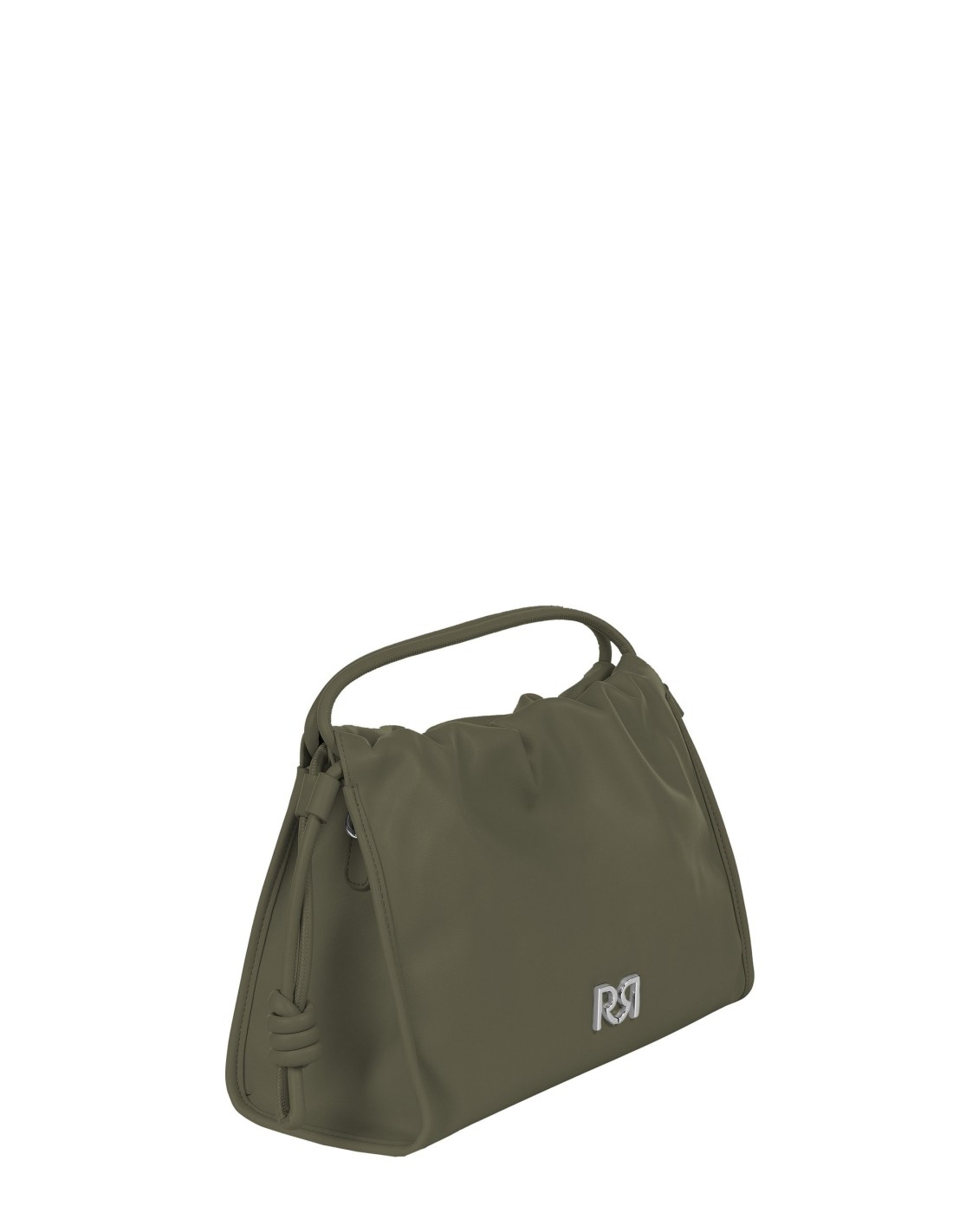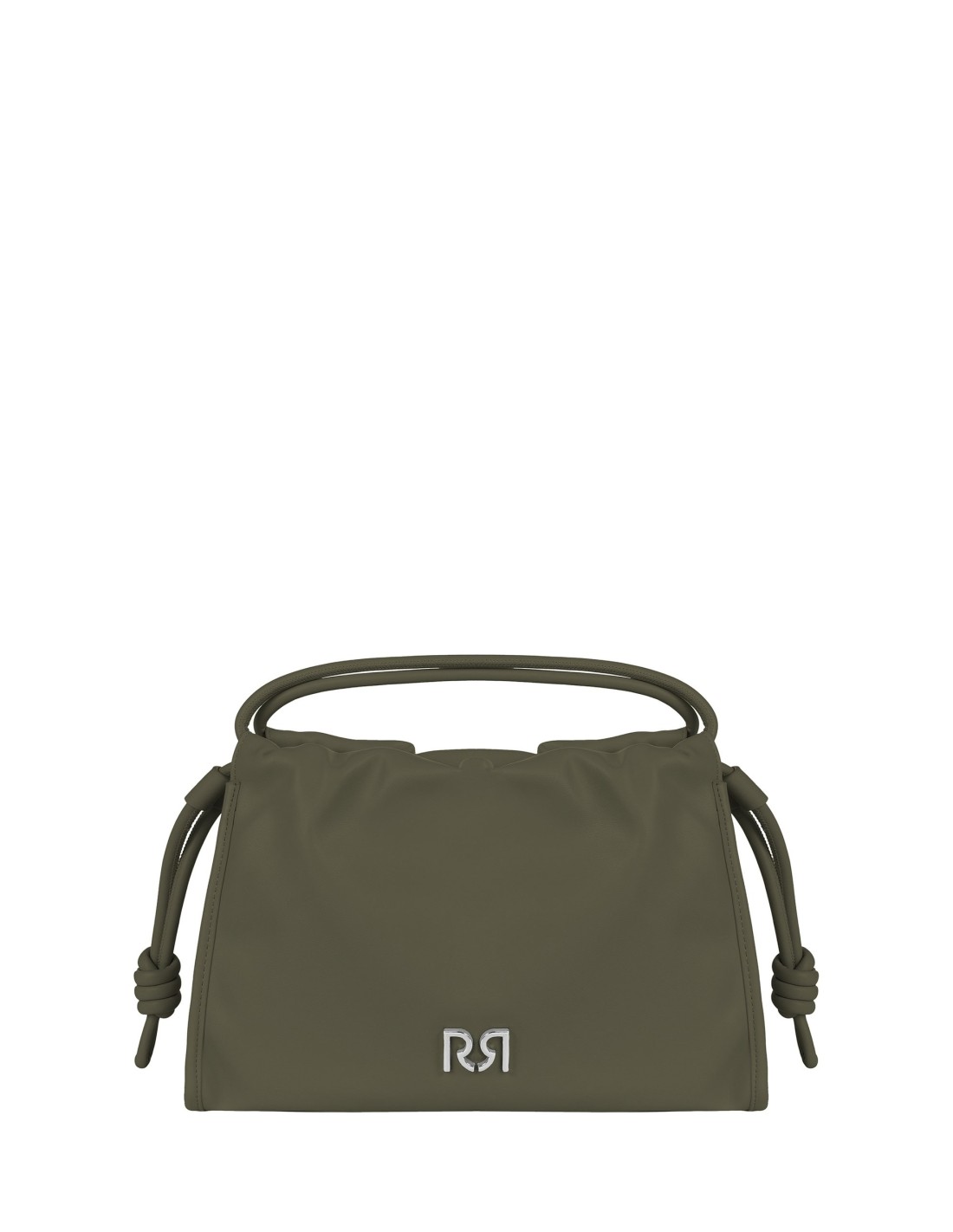 Mala Rinascimento em suave pele sintética lisa, de volume compacto mas espaçosa. O fecho com cordão protege o interior, enquanto a alça ajustável e removível e os nós laterais conferem personalidade. Perfeita do escritório ao aperitivo, para uma elegância diária sem esforço.
