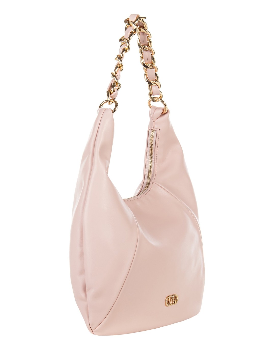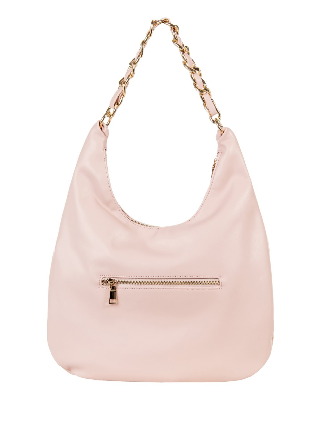 Mala de ombro macia em pele sintética lisa, silhueta envolvente e espaçosa. Alça de corrente metálica e logótipo frontal iluminam o design, enquanto a correia ajustável e removível a torna versátil do escritório ao aperitivo, perfeita para o uso quotidiano.