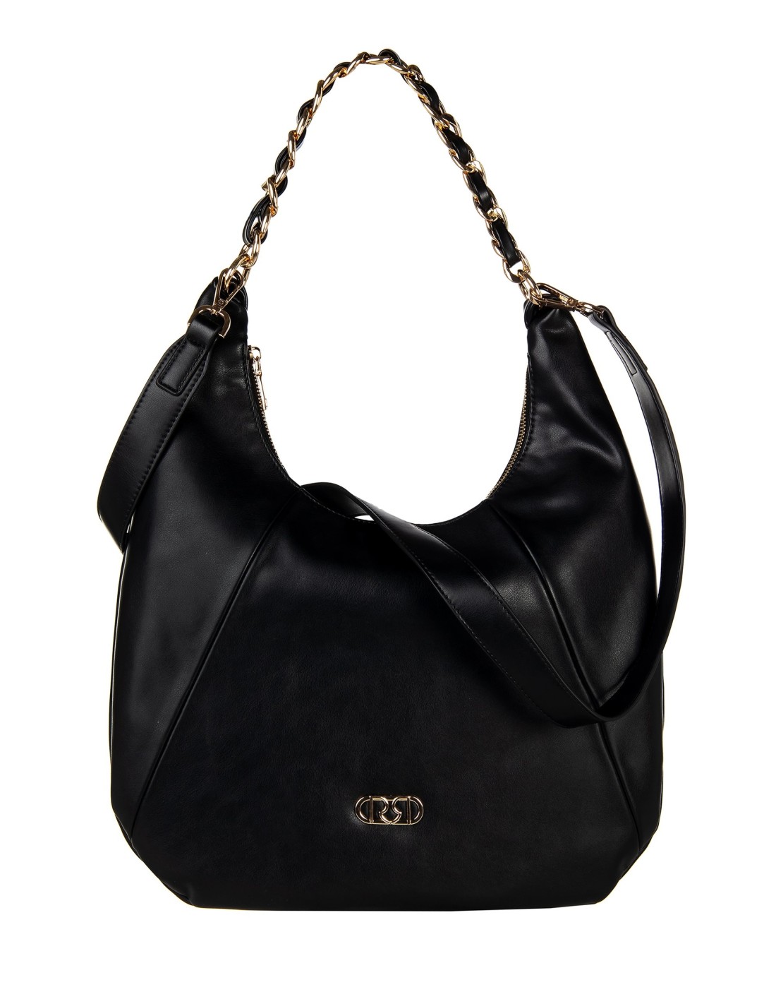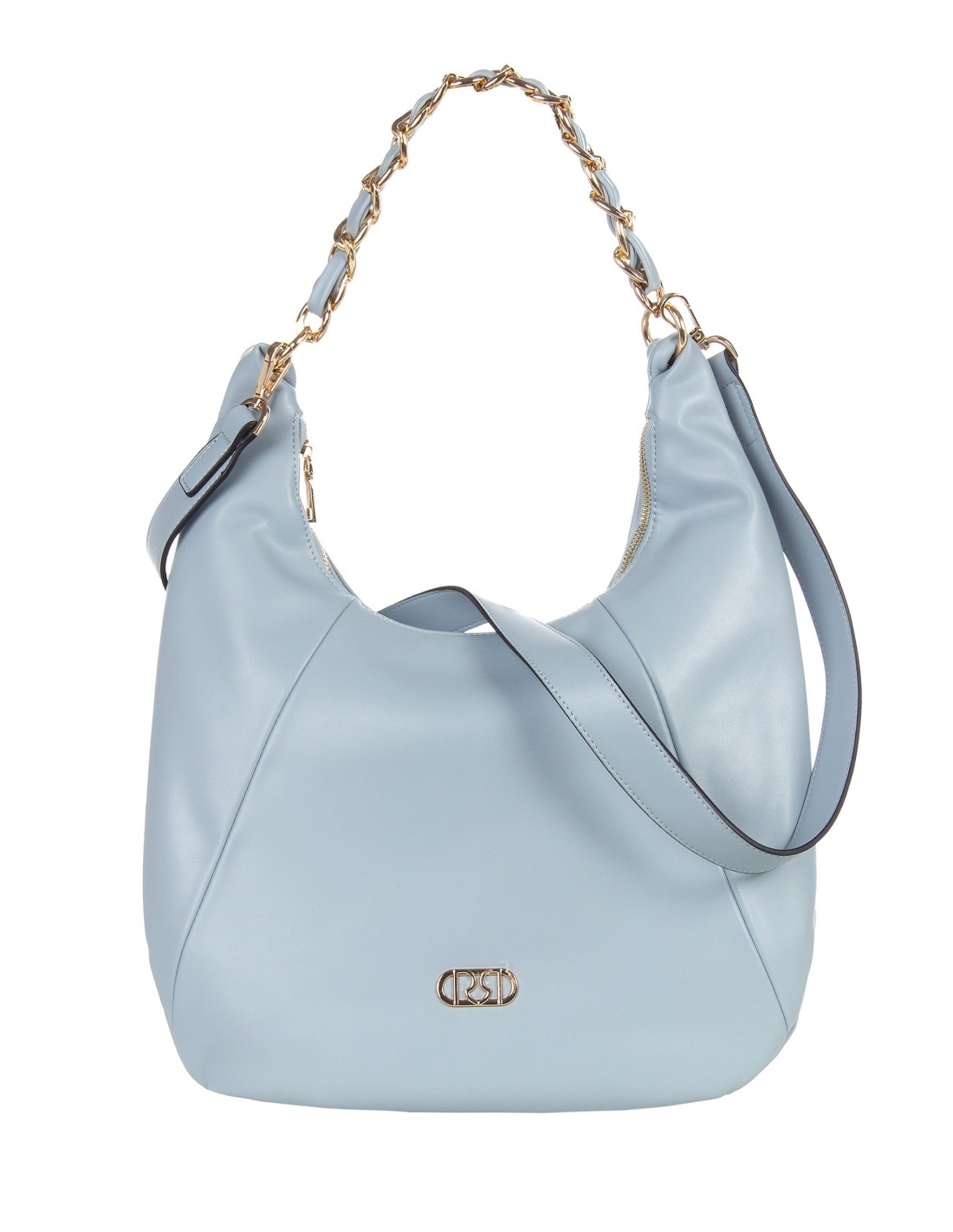 Mala de ombro macia em pele sintética lisa, silhueta envolvente e espaçosa. Alça de corrente metálica e logótipo frontal iluminam o design, enquanto a correia ajustável e removível a torna versátil do escritório ao aperitivo, perfeita para o uso quotidiano.