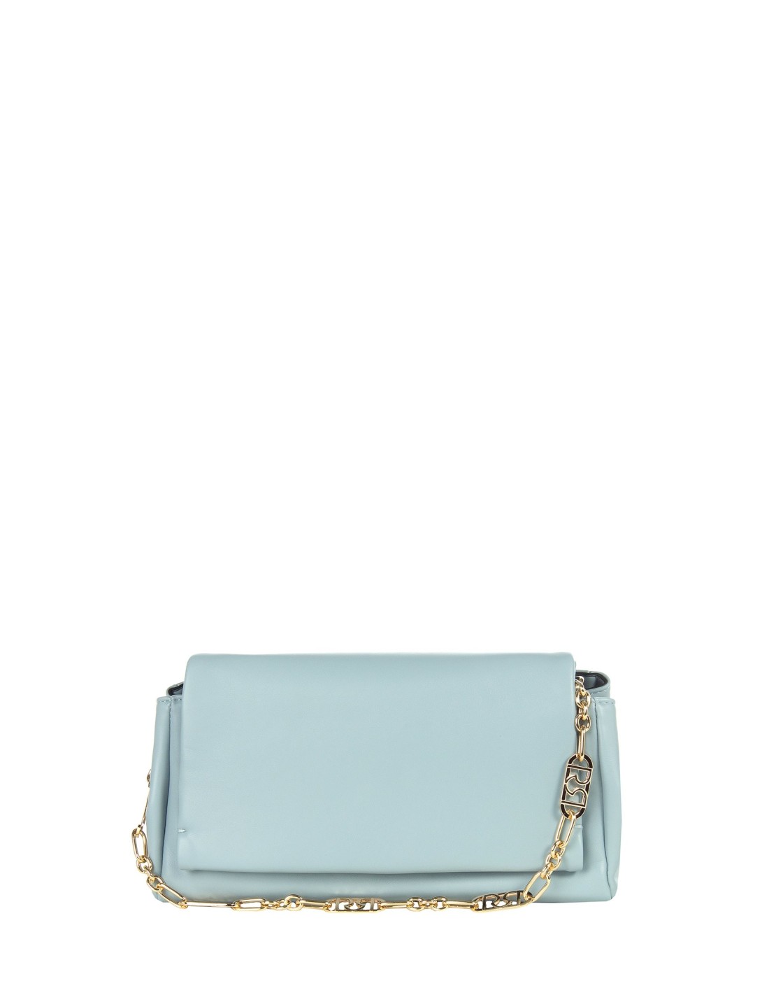 Silhueta suave em pele sintética lisa, espaçosa mas compacta, perfeita ao ombro ou crossbody graças à alça ajustável e removível. A alça em corrente com logótipo ilumina o design essencial: ideal do escritório ao aperitivo para uma elegância sempre descontraída.