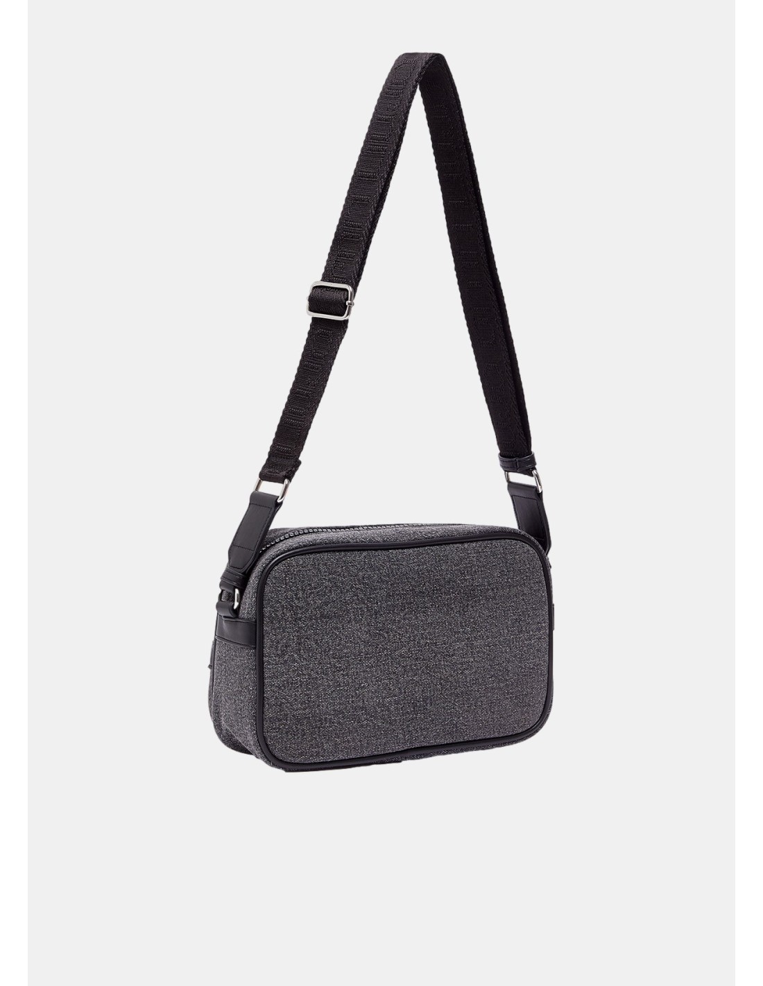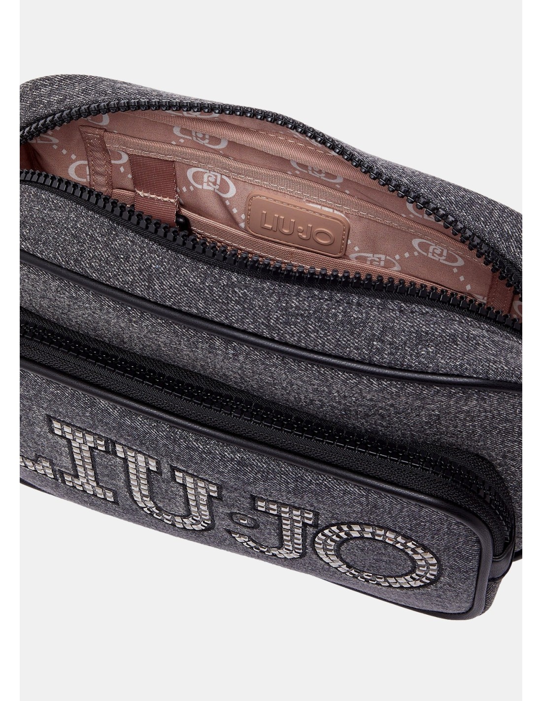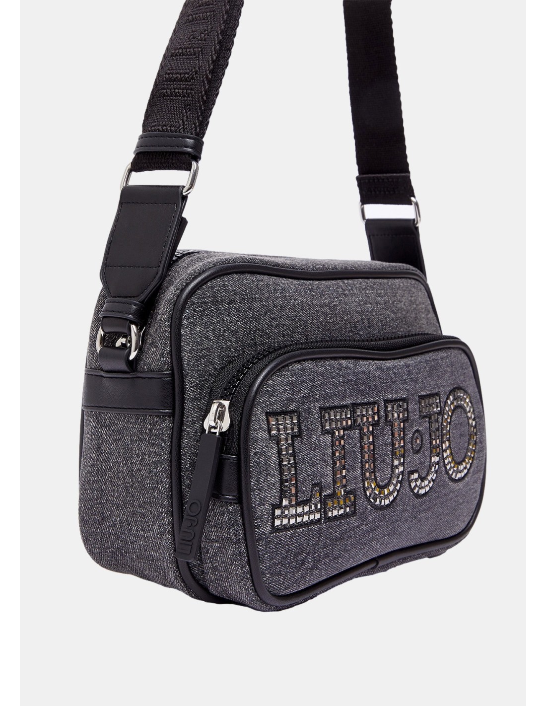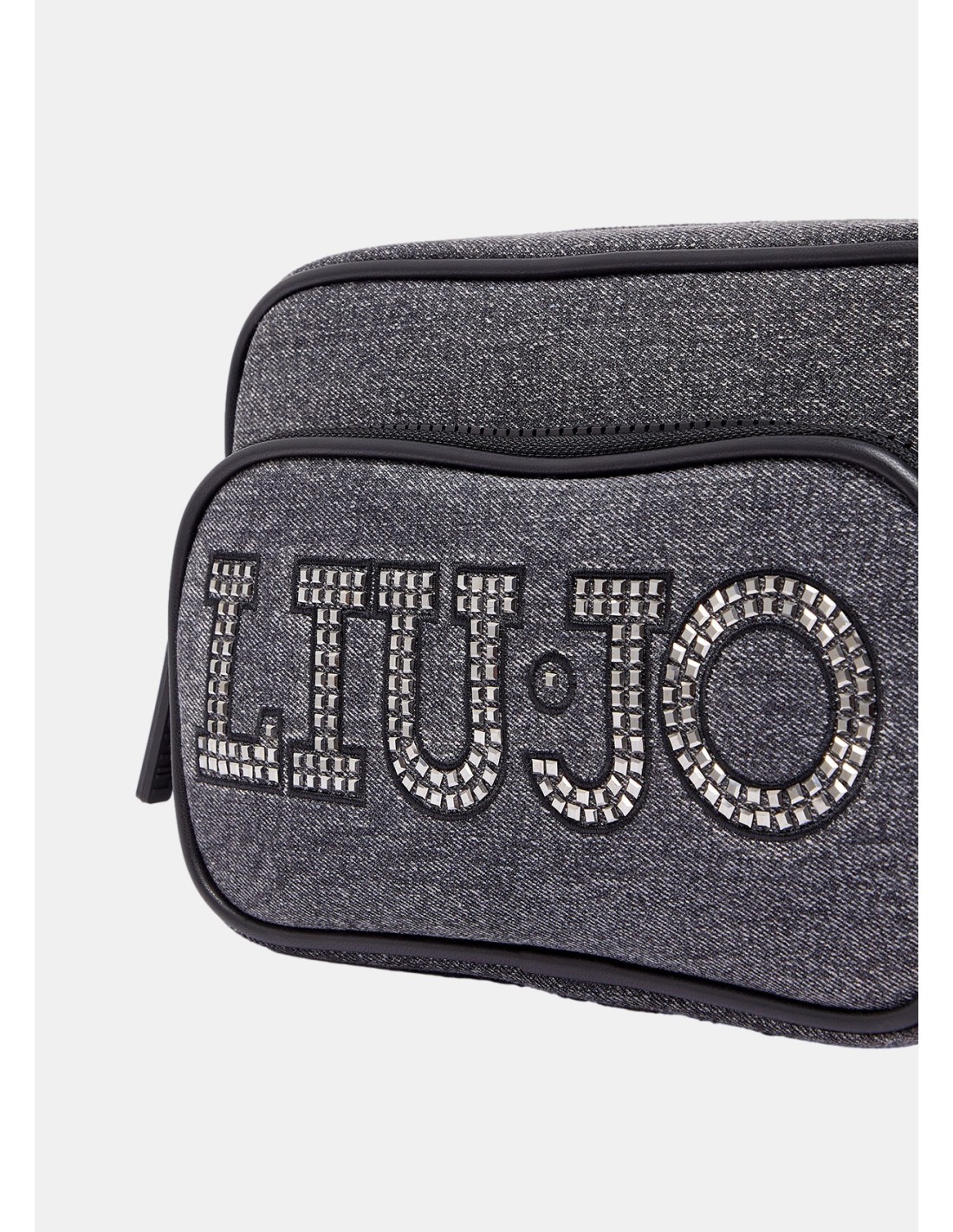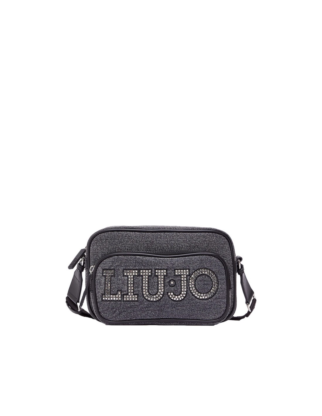 Bolsa a tiracolo em denim, com strass, lisa.
