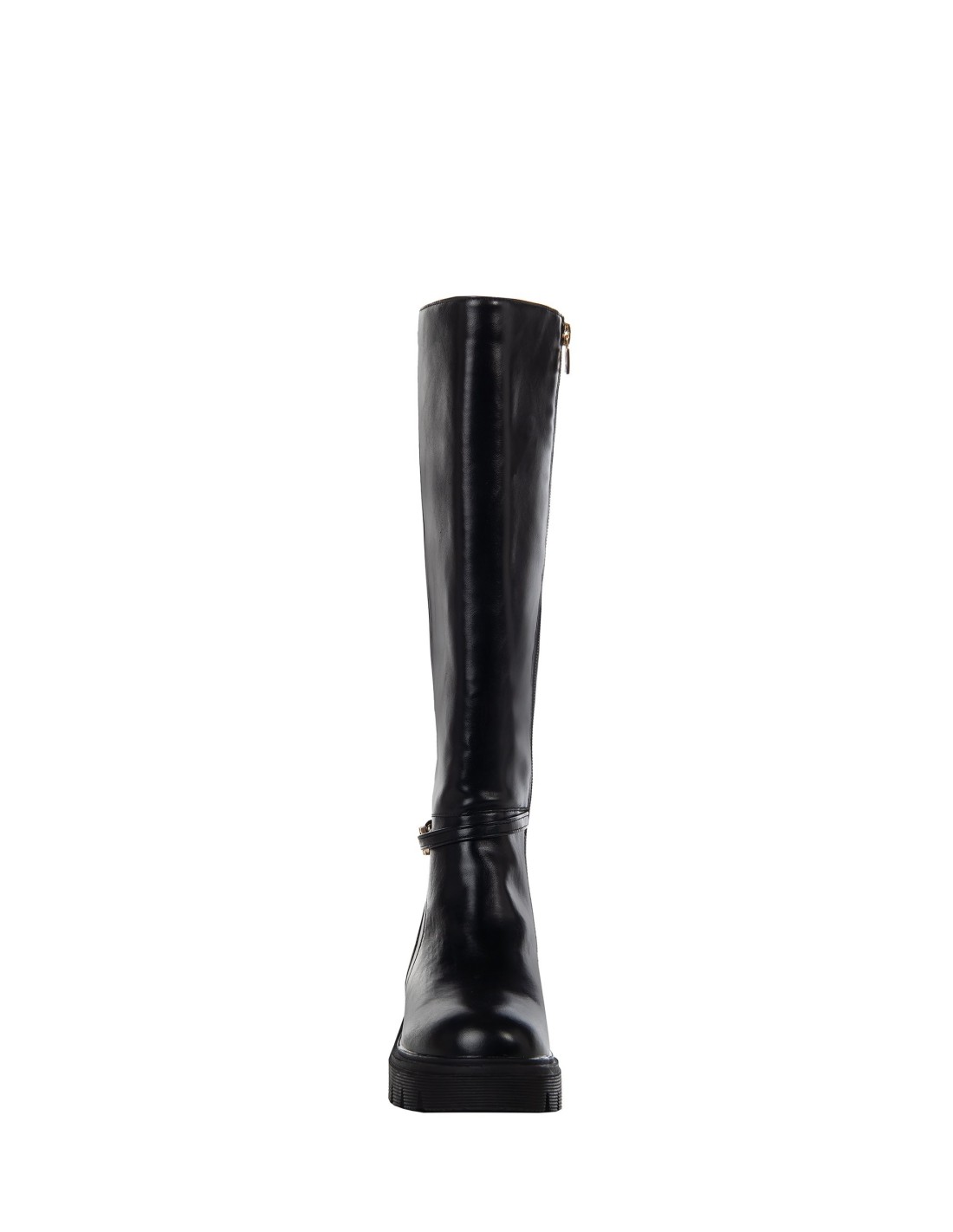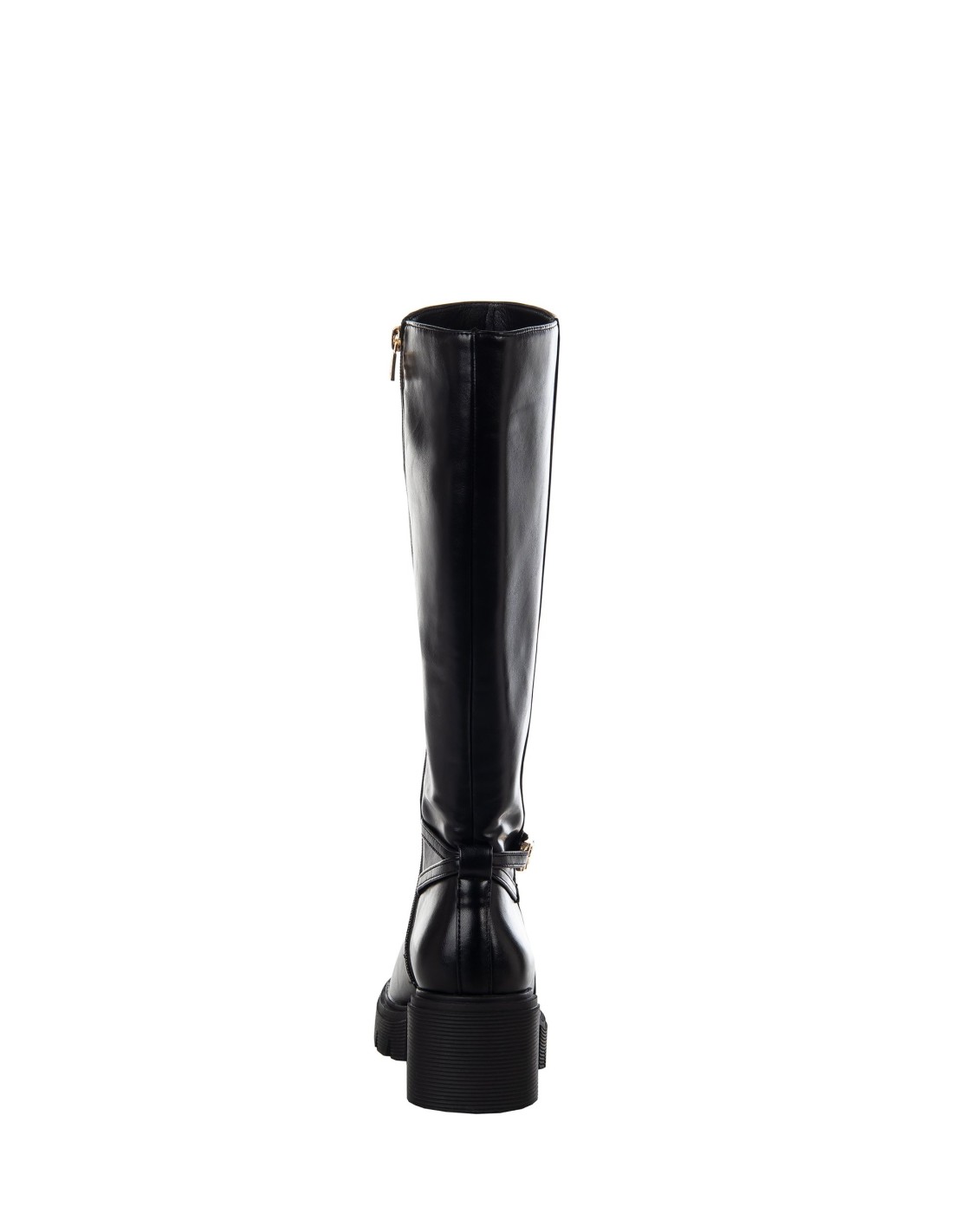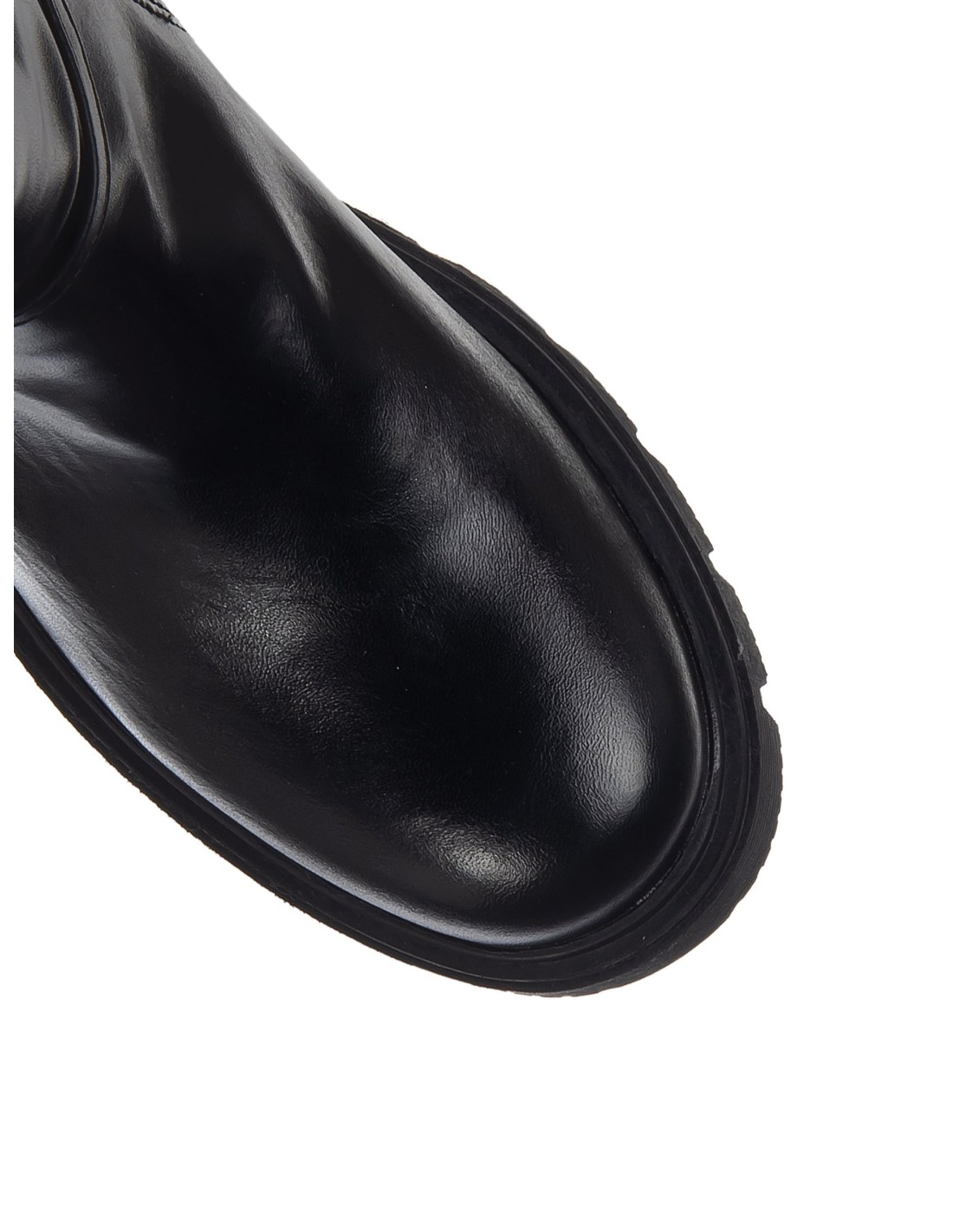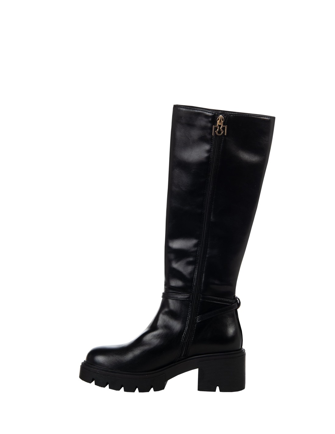 Bota de cano alto com um ajuste confortável e uma perna seca, em material liso com efeito de couro e uma sola intermédia leve para um andar estável. Tira cruzada no tornozelo com etiqueta RR e fecho lateral para um ajuste rápido. Utilização versátil durante o dia: perfeita com vestidos midi ou ganga para o escritório e para o dia a dia.