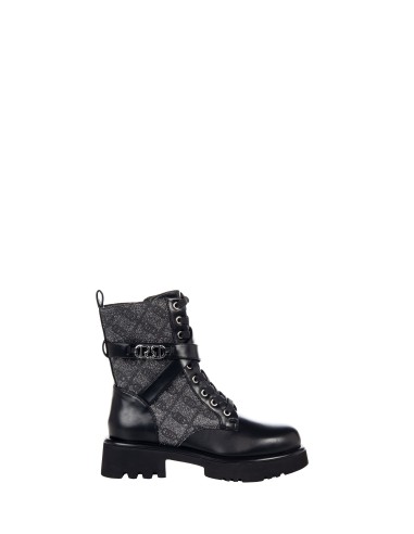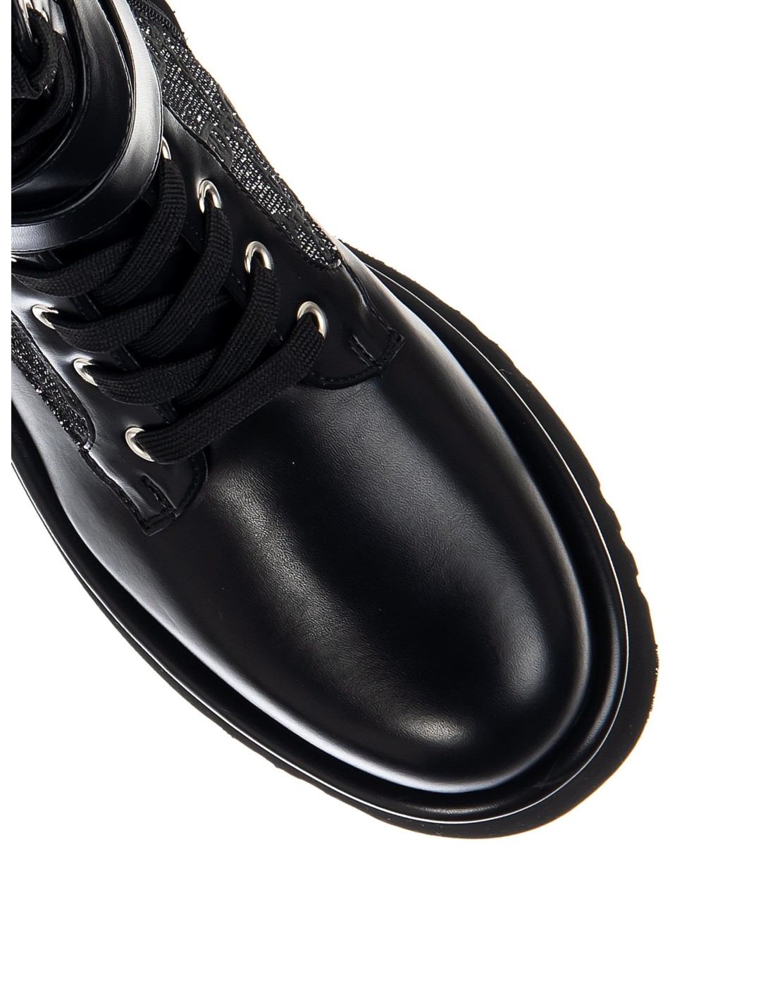 Bota de tornozelo com atacadores com detalhes brilhantes e padrão de logótipo
