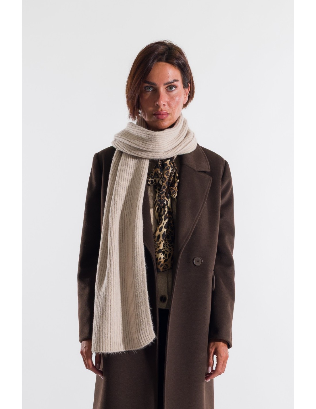 Kontatto apresenta um acessório envolvente em malha lisa com canelados macios: corte longo e confortável que valoriza o pescoço sem volume. Fio macio e quente, agradável na pele. Borda acabada e volume equilibrado, perfeito para dar um nó. Ideal para o escritório, para as deslocações diárias e para o dia a dia no inverno.