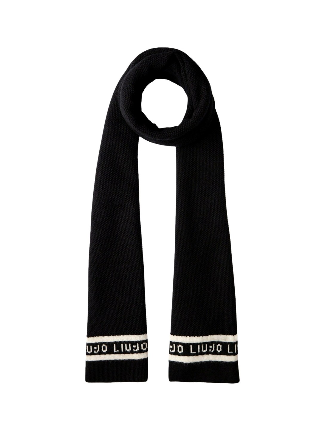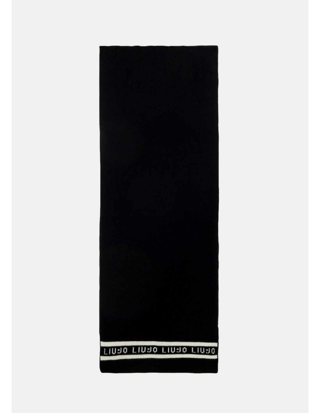 Cachecol preto, mistura de viscose, pérolas aplicadas, logótipo jacquard.