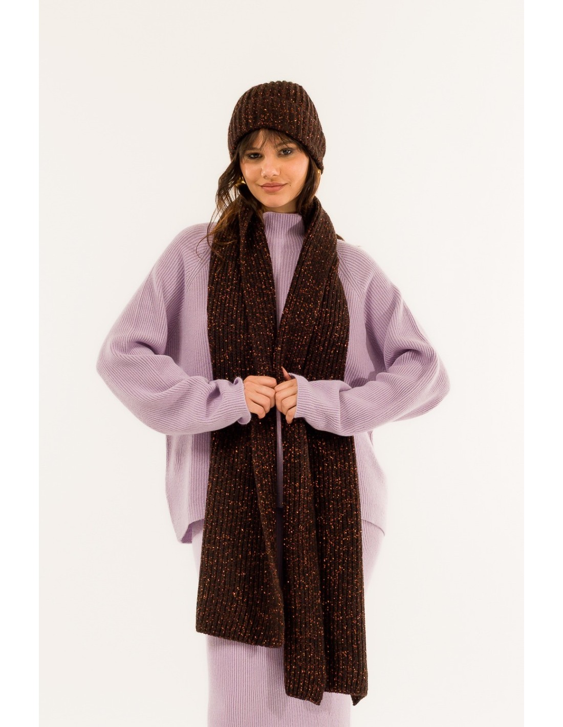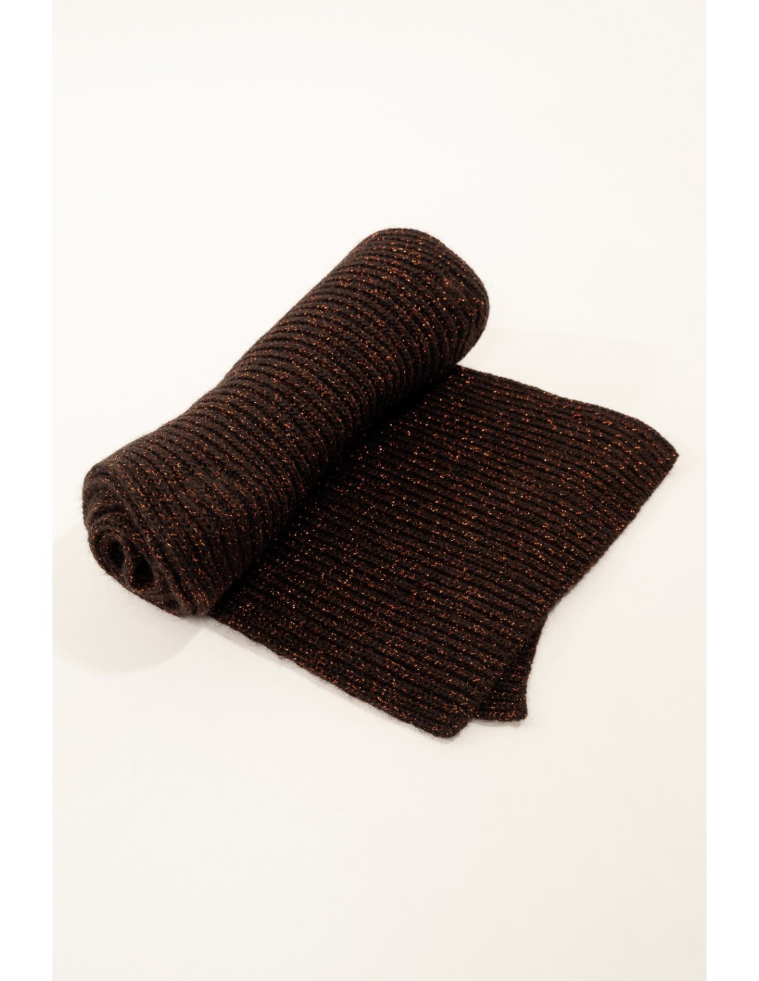 Acessório de embrulho com um ajuste suave. Malha canelada em fio macio com fios brilhantes para um toque precioso. Extremidades acabadas e textura encorpada que aquece sem pesar. Perfeita para as deslocações na cidade, para o escritório e para o lazer: confere conforto e define a silhueta com uma elegância discreta.