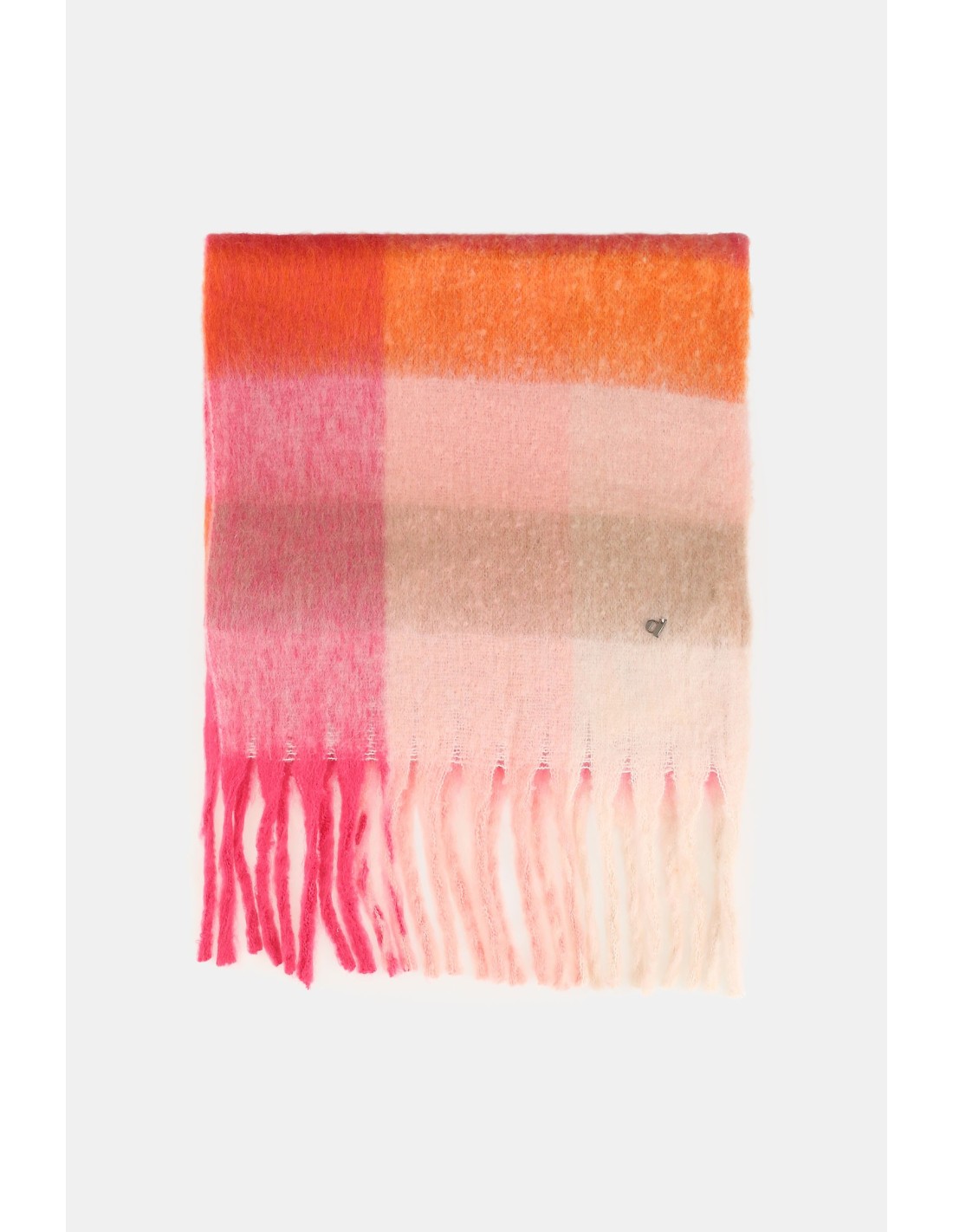 Deixa-te envolver por um cachecol xadrez com longas franjas, perfeito para dar um toque vibrante e original ao teu look quotidiano. As nuances entrelaçam-se num padrão requintado e alegre, enquanto a textura macia e as franjas acrescentam carácter e movimento a cada outfit.
