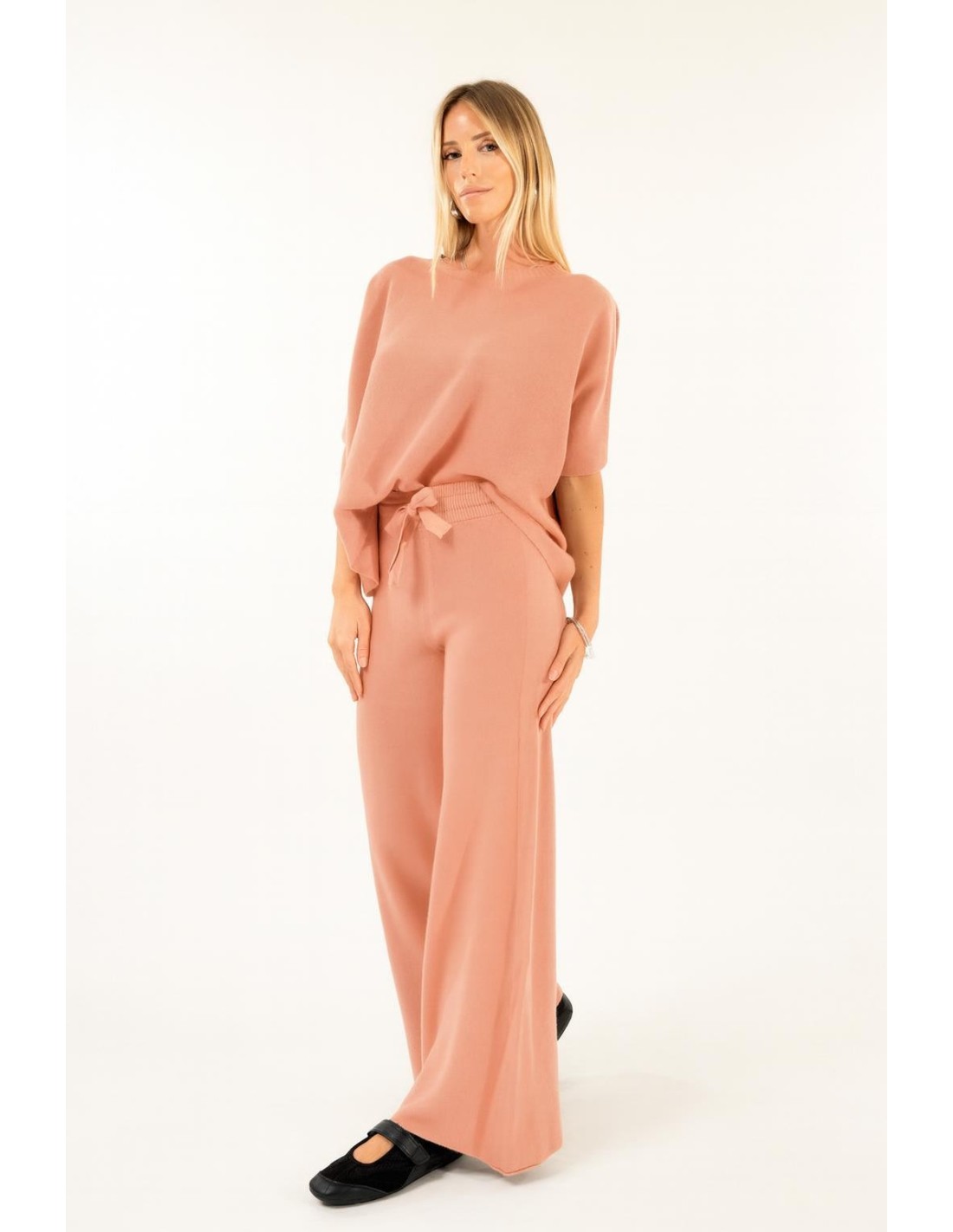 Kontatto assina umas calças de perna larga com um corte macio e fluido. Malha trabalhada em ponto arroz para uma textura suave e envolvente, cintura alta canelada com cordão atado que define a silhueta sem apertar. Perfeito do escritório ao fim de semana: conforto elegante para o trabalho, viagens e para o dia a dia.