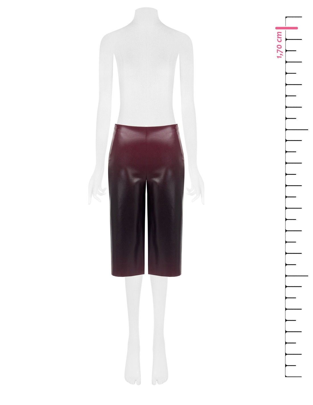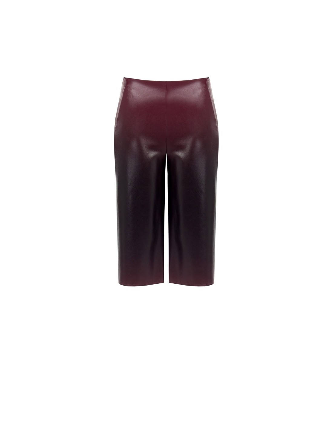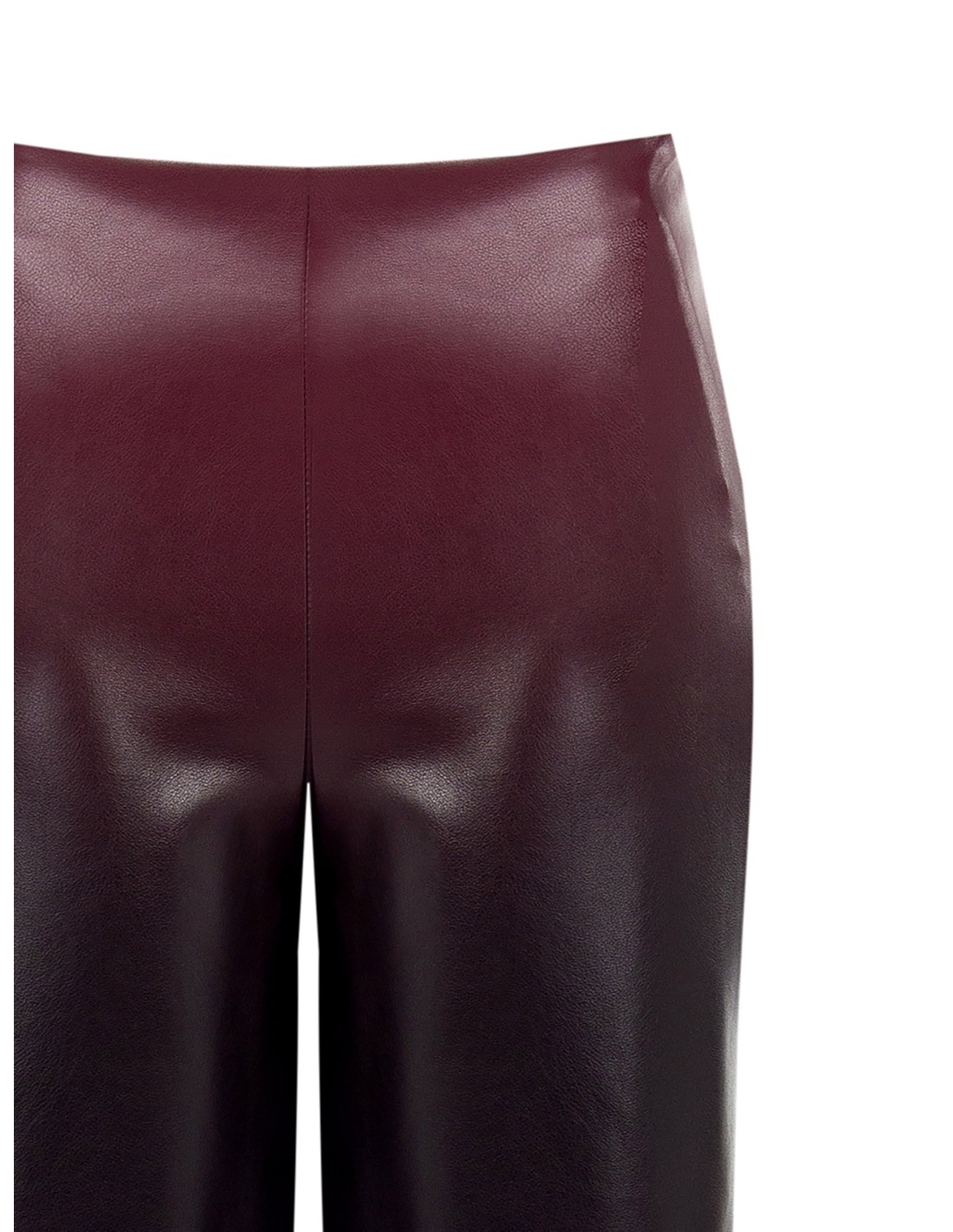 Cropped de cintura alta com corte direito que alonga a silhueta. Em suave eco-pele lisa, com efeito ligeiramente brilhante. Cintura limpa sem costuras visíveis e fecho invisível na parte de trás para uma linha impecável. Perfeito do escritório ao aperitivo, combina com blazer ou malha para um look decidido e versátil.