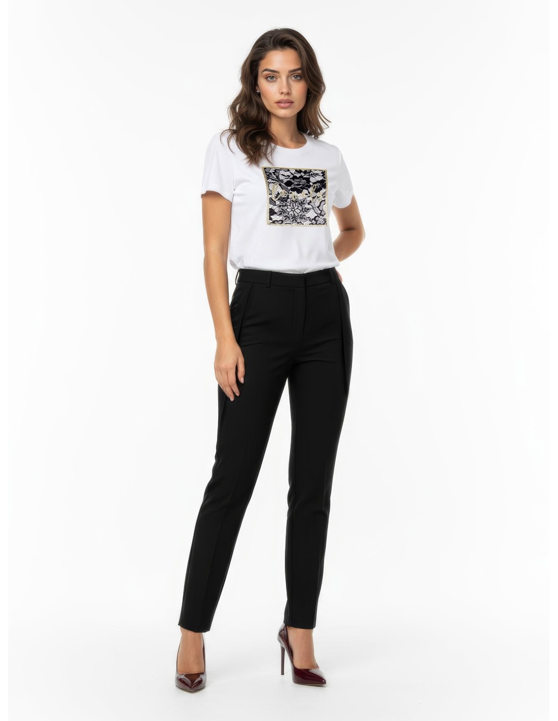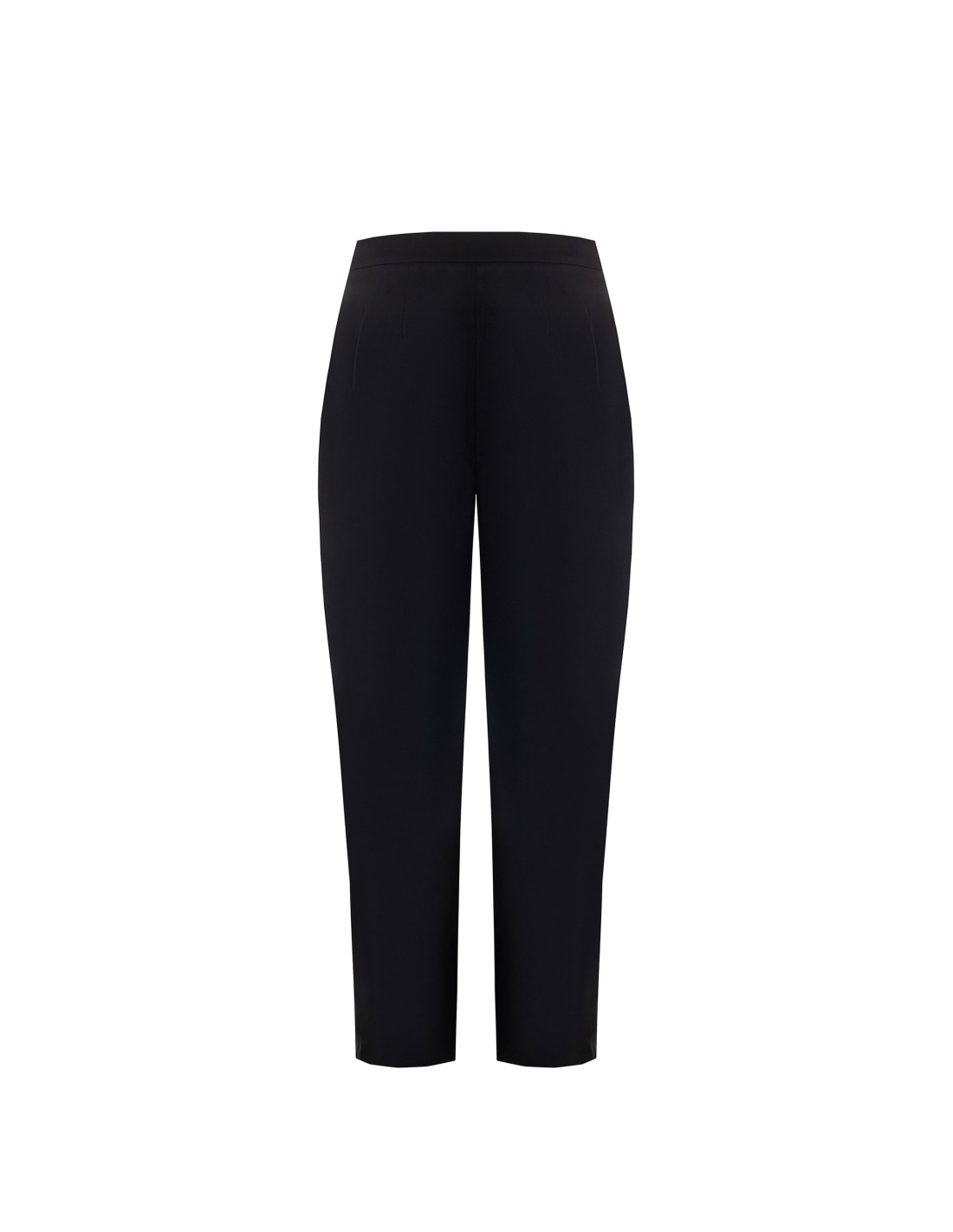 Calças de cintura média e perna macia com volume controlado e fundo cónico: esculpem a silhueta e permanecem confortáveis durante todo o dia. Tecido fluido com ligeira elasticidade. Pregas à frente e fecho oculto para um look simples. Perfeitas para o escritório e aperitivos, combinam bem com blazers ou tops acetinados.