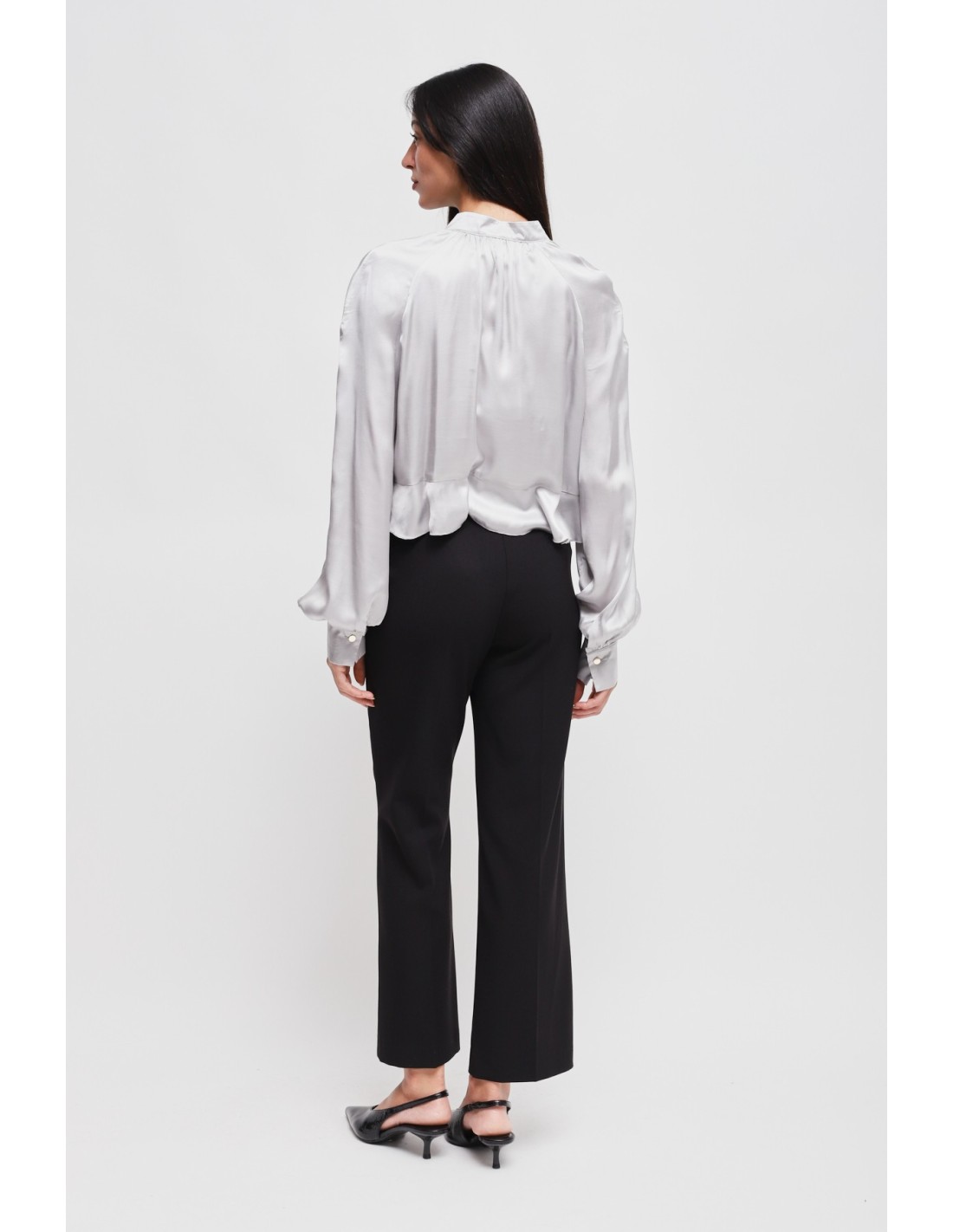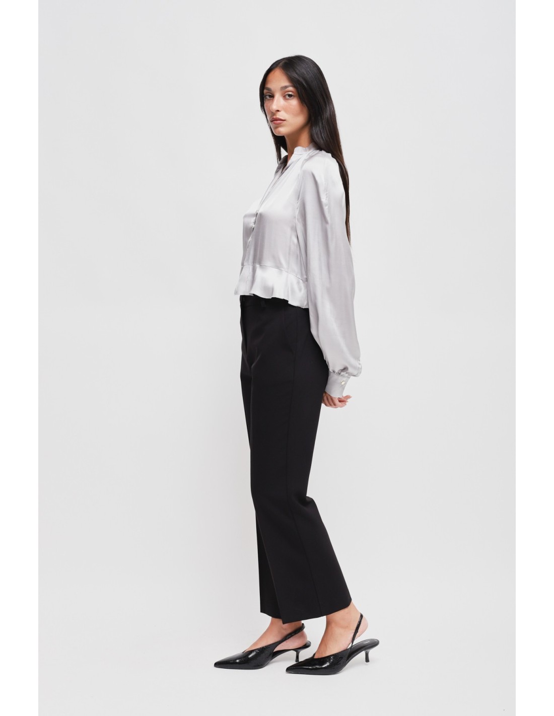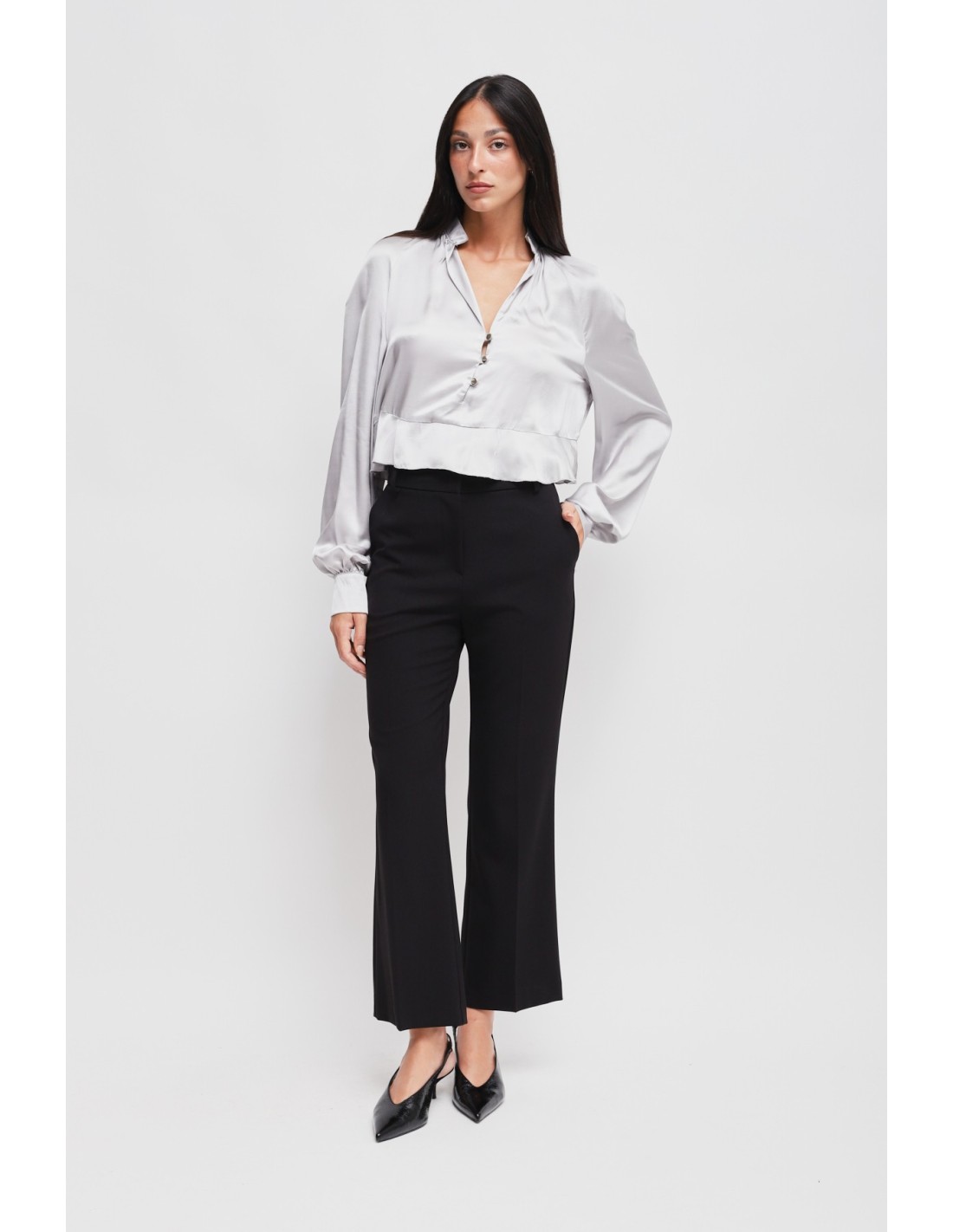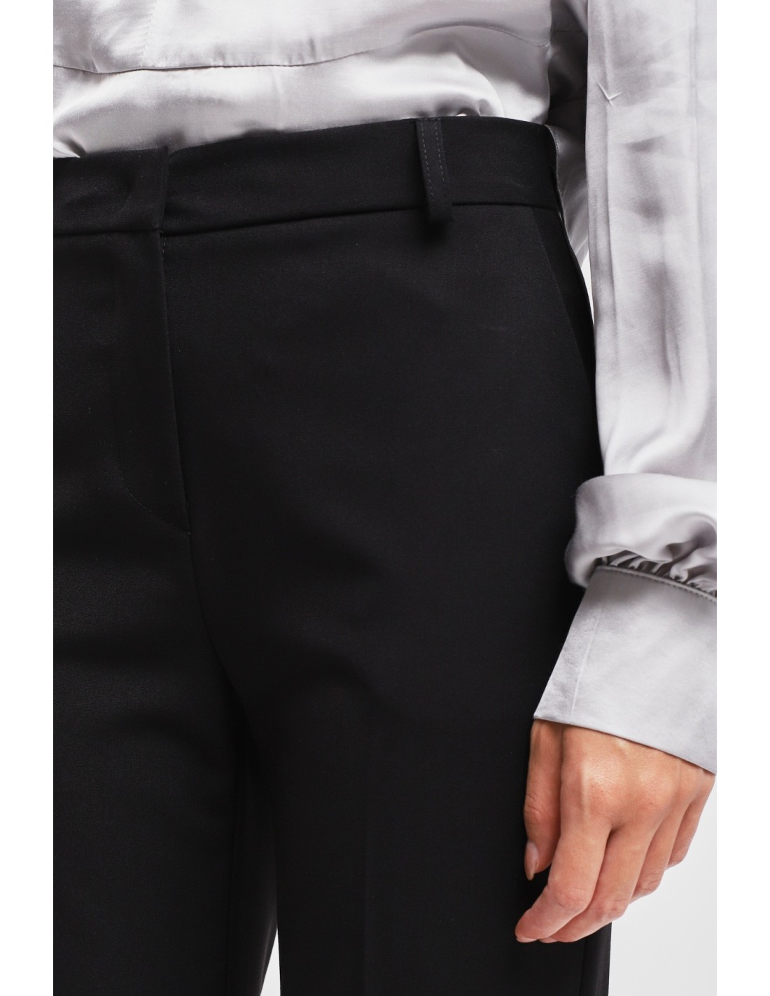 Calças com perna ligeiramente evasé, corte regular que alonga a silhueta. Tecido fluido com toque macio e confortável. Cintura média com passantes e prega vincada frontal, bolsos laterais para praticidade. Perfeitas do escritório ao aperitivo, combinam com blazers ou blusas para uma elegância sem esforço.