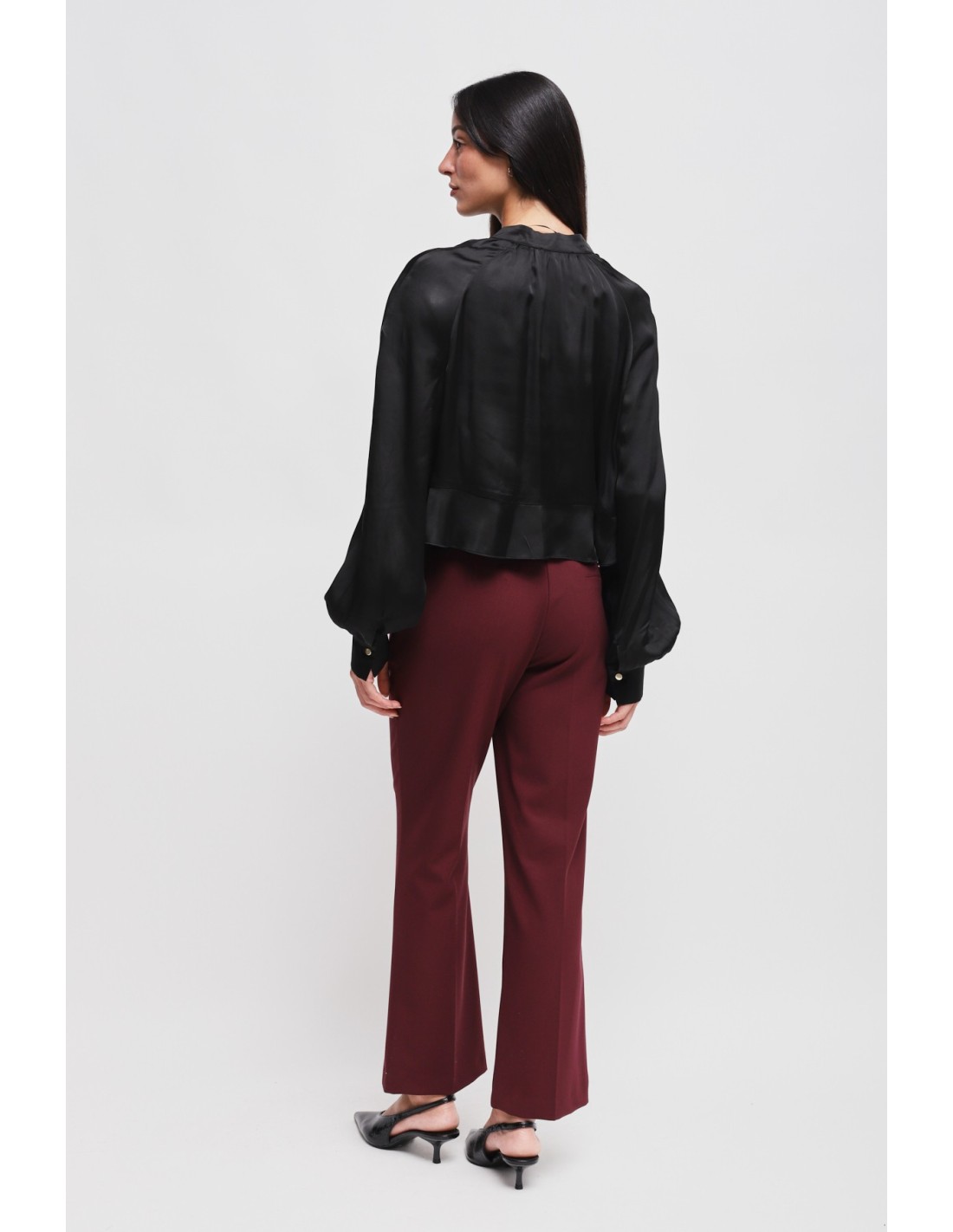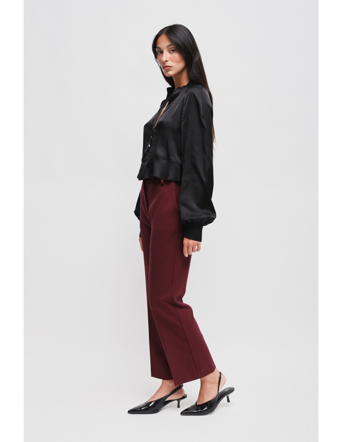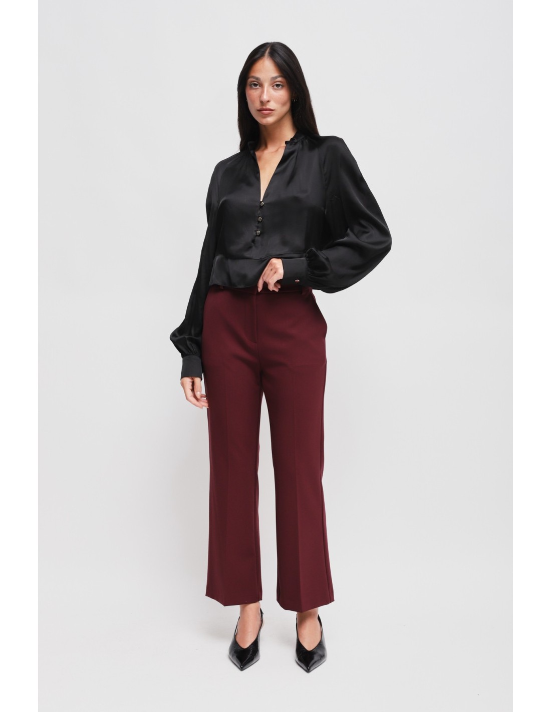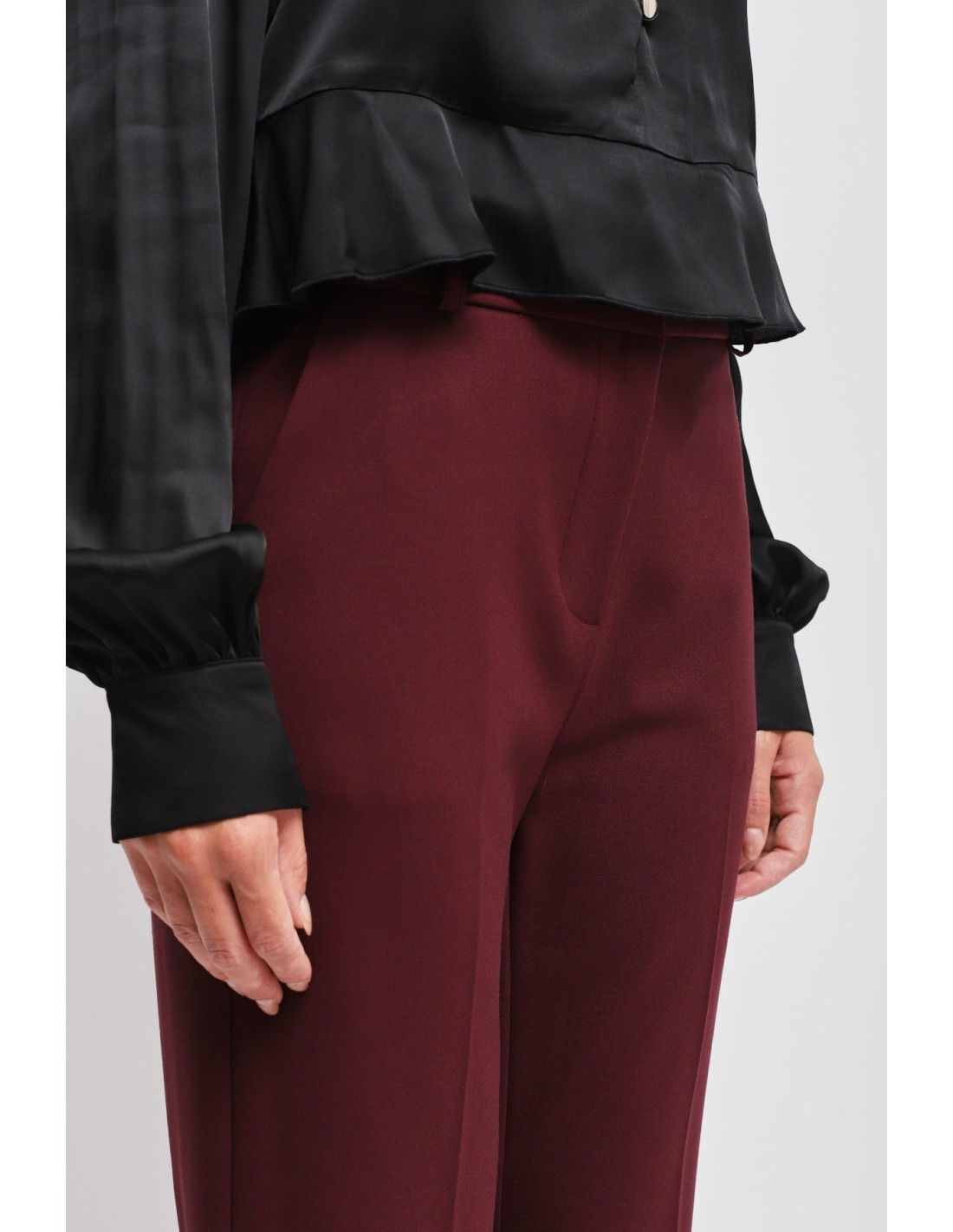 Calças com perna ligeiramente evasé, corte regular que alonga a silhueta. Tecido fluido com toque macio e confortável. Cintura média com passantes e prega vincada frontal, bolsos laterais para praticidade. Perfeitas do escritório ao aperitivo, combinam com blazers ou blusas para uma elegância sem esforço.