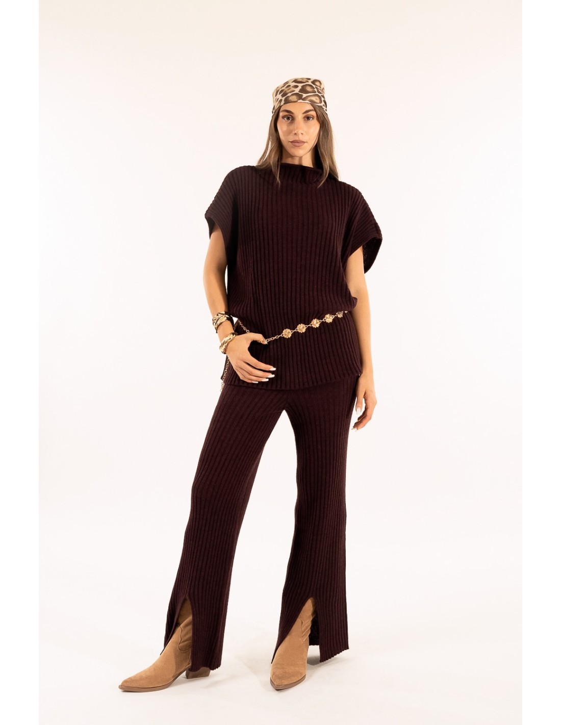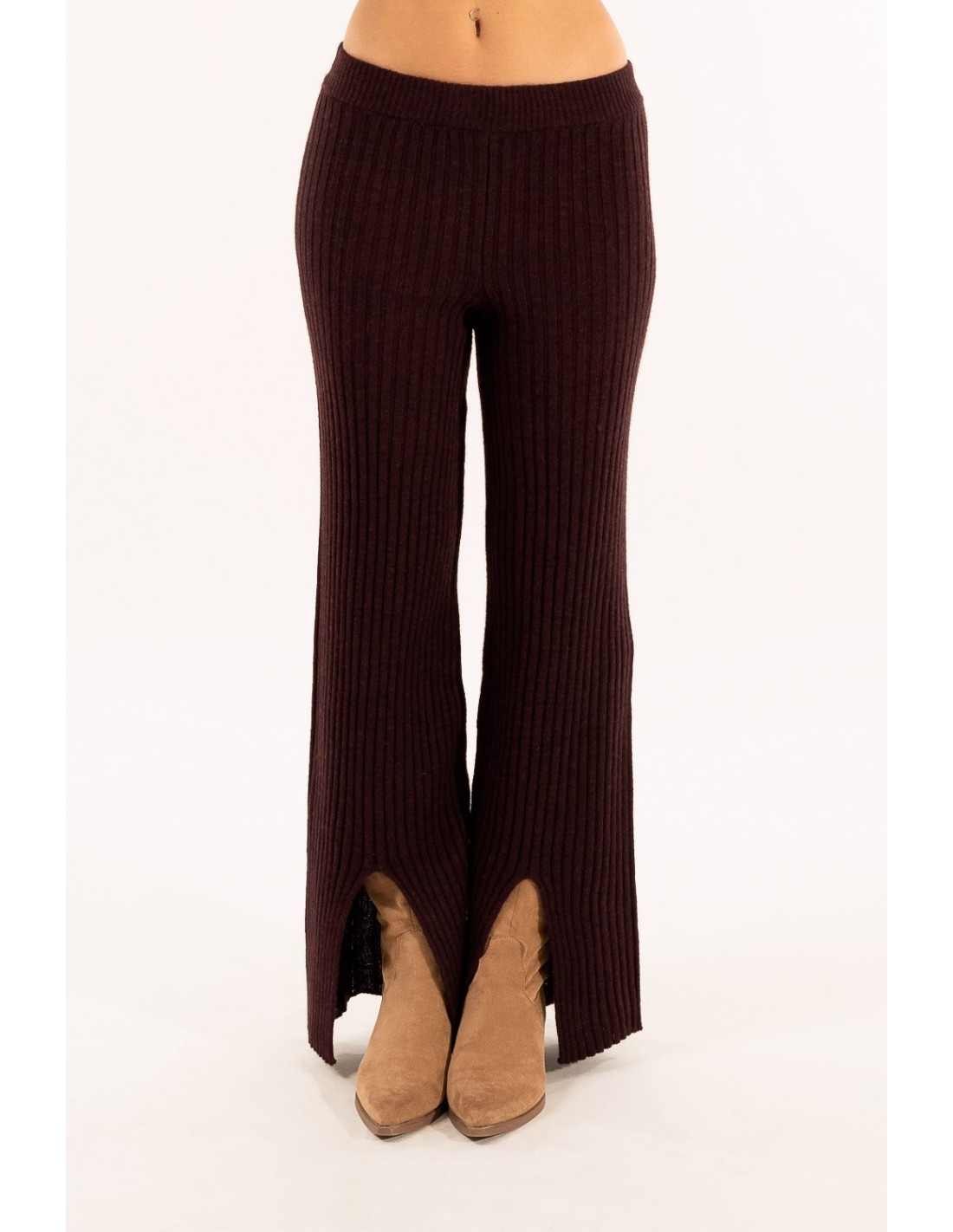 Calças Caneladas Com Fenda Kontatto