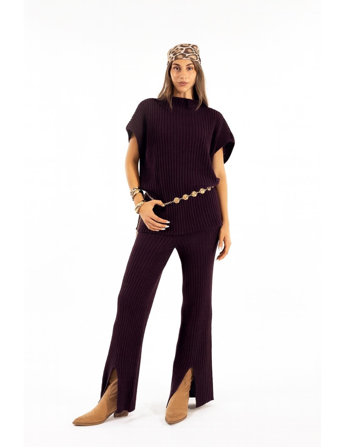 Calças Kontatto de perna reta com corte cómodo que alonga a silhueta. Malha canelada em tricô macia e elástica para conforto diário. Aberturas frontais no tornozelo e cintura elástica que envolve sem apertar. Perfeitas com botas para um escritório casual ou para um look quotidiano chique.
