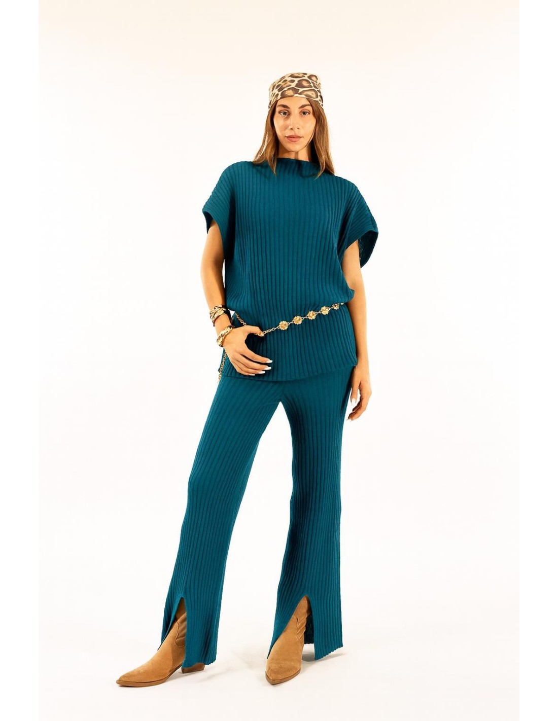 Calças Caneladas Com Fenda Kontatto