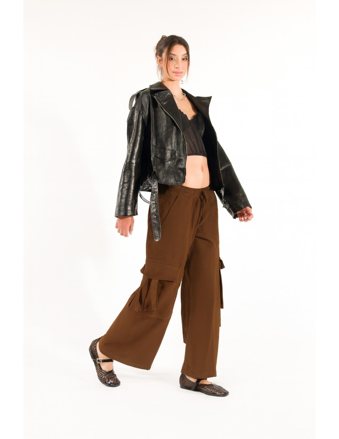 Kontatto assina uma calça relaxada de perna larga, com cintura elástica e cordão para um ajuste confortável. Algodão leve de toque macio, bolsos cargo espaçosos e fitas laterais ajustáveis definem o caráter. Versátil para o dia: perfeita para passeio urbano, fins de semana e escritório casual.