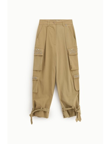 Calças com bolsos de carga e pormenores de apliques