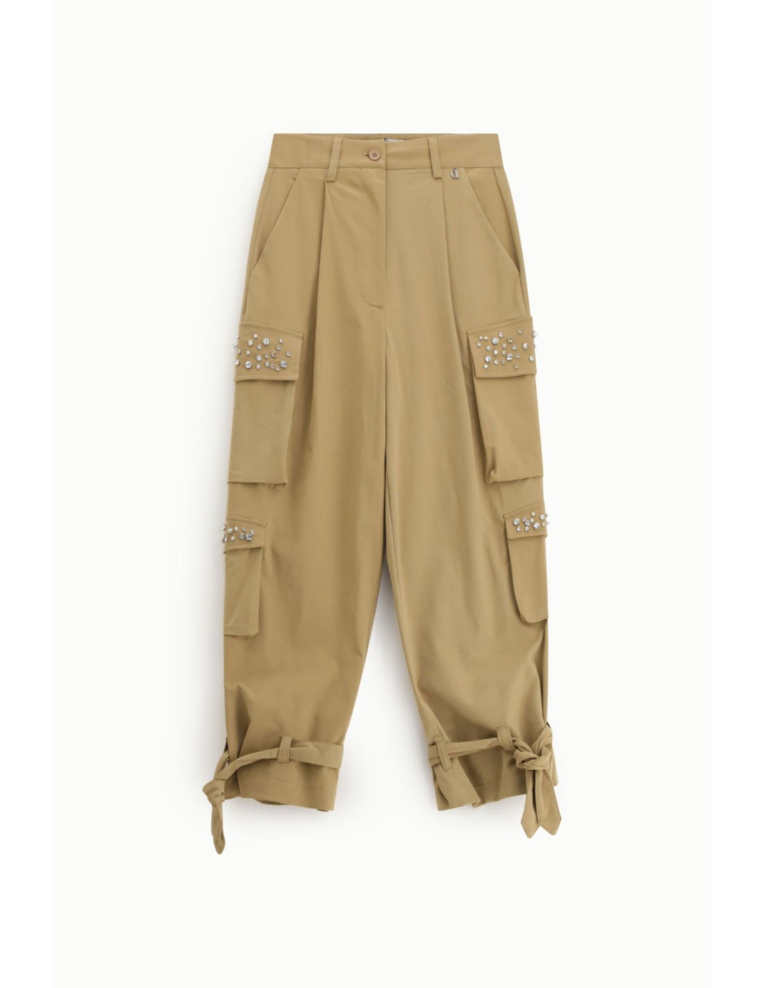 Com estas calças, todos os dias têm algo de especial. Os bolsos cargo grandes com aplicações brilhantes dão um toque original e prático, perfeito para quem gosta de se destacar sem sacrificar o conforto. As bainhas com nó acrescentam um toque lúdico: imagine usá-las para um look fresco e arrojado, pronto para a levar a qualquer lado.