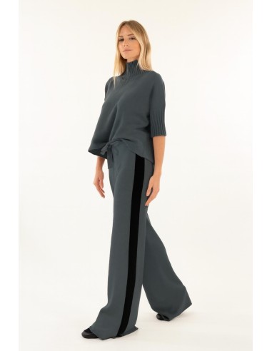 Kontatto assina uma calça macia de perna larga com um ajuste descontraído que emagrece a silhueta. Malha fina com efeito caxemira, agradável à pele. Cintura elástica com cordão para um conforto ajustável e faixa lateral contrastante com corte sport-chic. Perfeito para o dia a dia e para os momentos de lazer, mesmo no escritório com um blazer.