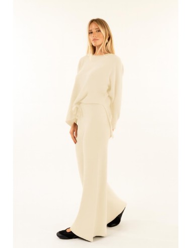 Calças de perna larga com um corte suave e fluido que afina a silhueta sem sacrificar o conforto. Malha tricotada macia e elástica, agradável para a pele. Cintura alta com banda canelada e cordão com laço; parte inferior ligeiramente alargada. Ideal para o quotidiano requintado, o trabalho inteligente e o lazer chique.