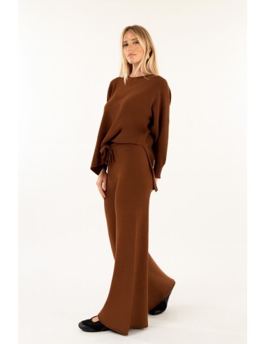 Calças de perna larga com um corte suave e fluido que afina a silhueta sem sacrificar o conforto. Malha tricotada macia e elástica, agradável para a pele. Cintura alta com banda canelada e cordão com laço; parte inferior ligeiramente alargada. Ideal para o quotidiano requintado, o trabalho inteligente e o lazer chique.