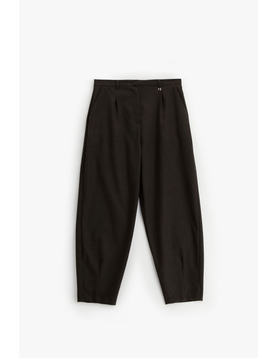 De corte relaxado mas feminino, estas calças de cintura alta são perfeitas para quem gosta de se distinguir com graça todos os dias. As pences à frente conferem linhas suaves e estrutura, enquanto o comprimento cropped deixa o tornozelo à mostra e realça os teus sapatos preferidos. Versáteis para o escritório e para o tempo livre.