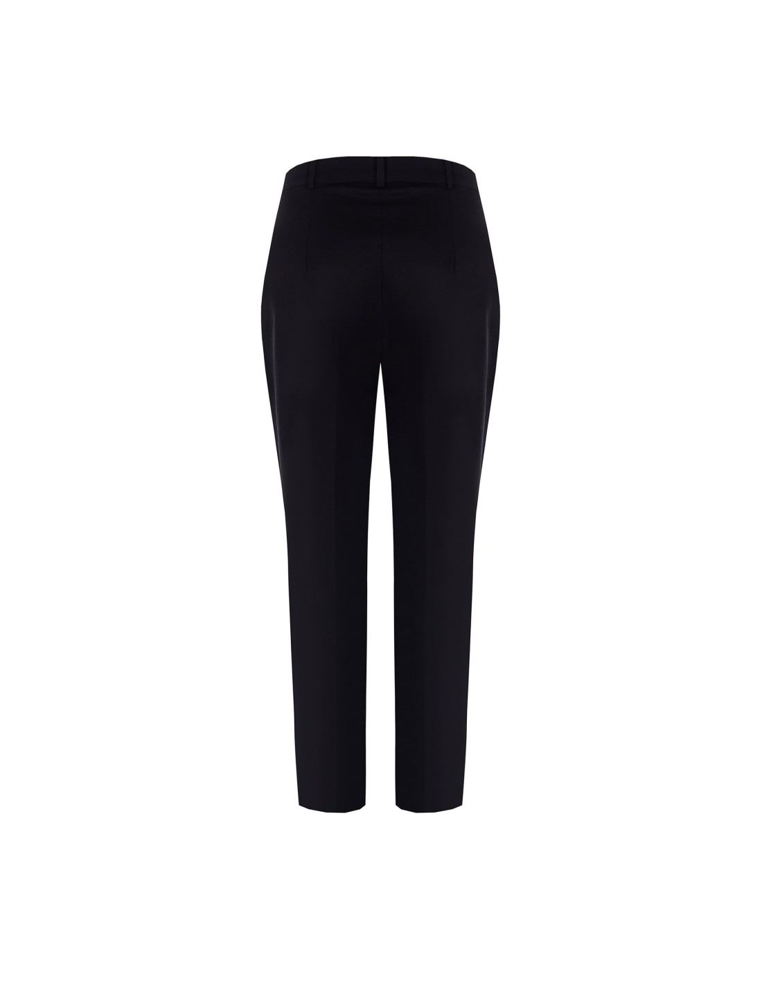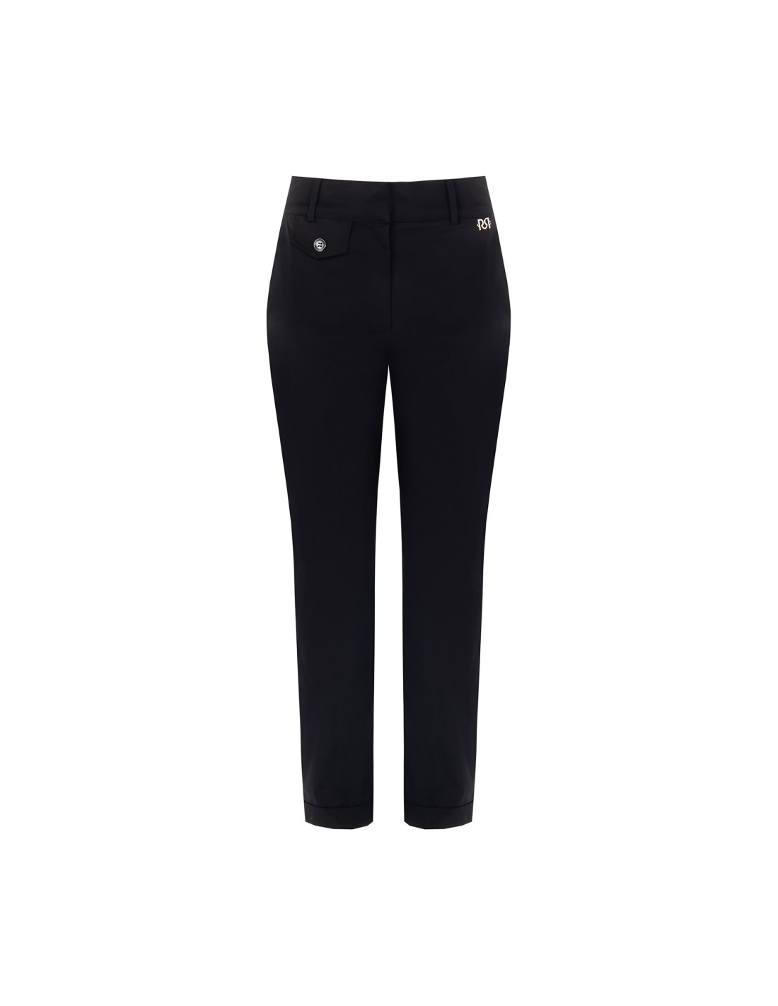 Calças até ao tornozelo com corte ajustado e confortável, em mistura de algodão com toque compacto e macio. O bolsinho com botão e o detalhe do logótipo em metal acrescentam carácter, enquanto o corte limpo alonga a silhueta. Perfeito para o escritório e para o dia a dia mais cuidado.