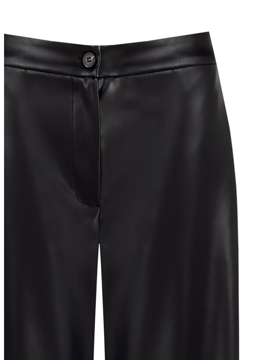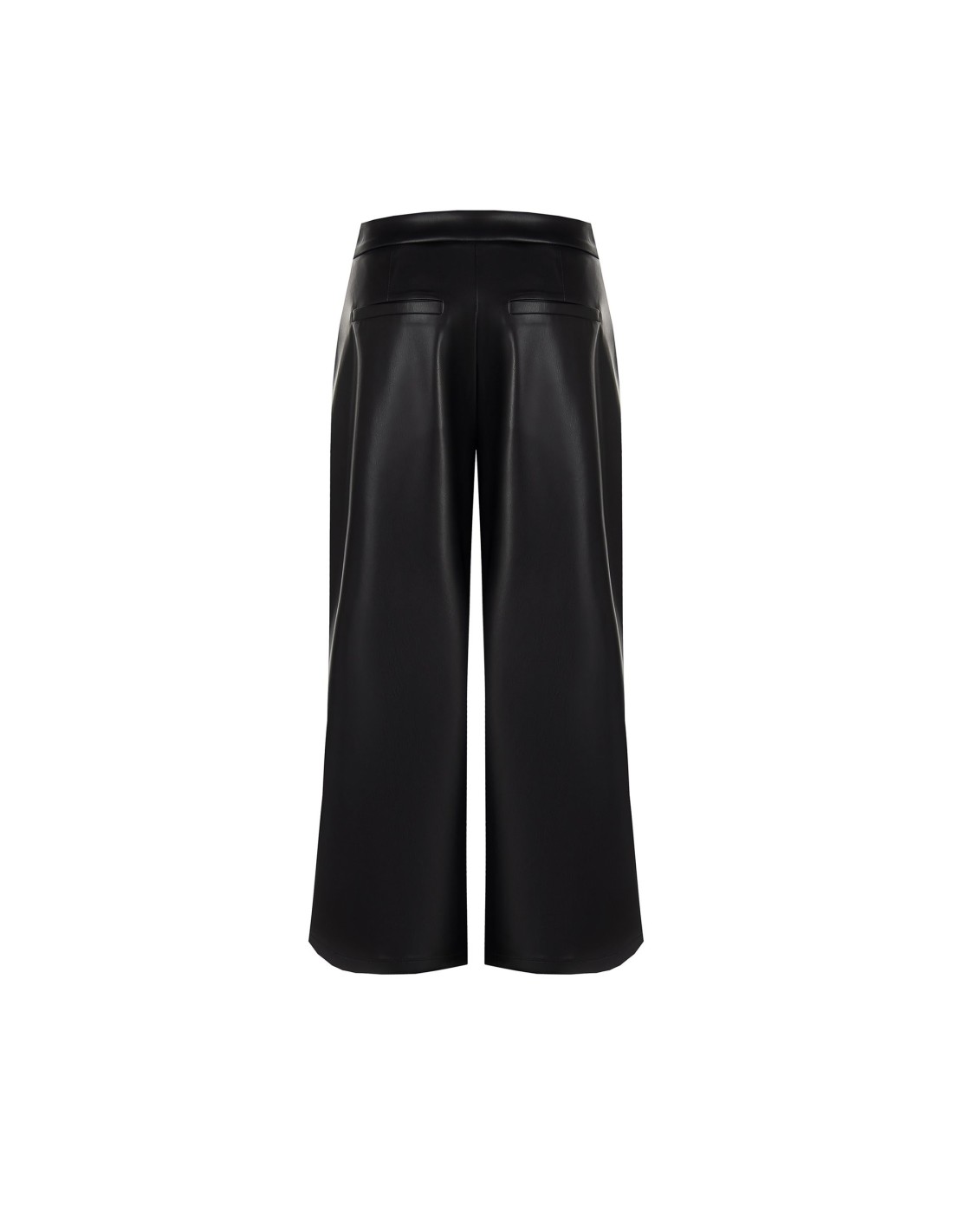 Cropped de perna larga, corte direito que alonga e deixa liberdade de movimento. Pele sintética macia e lisa, efeito segunda pele. Cintura média com botão e fecho de correr ocultos, bolsos laterais e pormenores posteriores. Perfeitos do escritório ao aperitivo: combinam com blazer ou malha para um look decidido mas confortável.