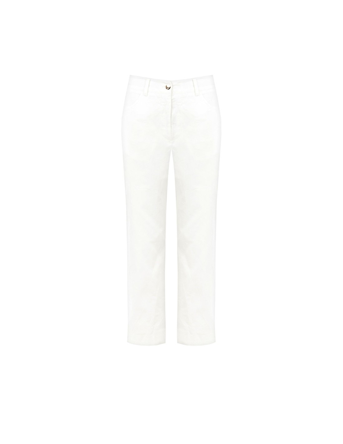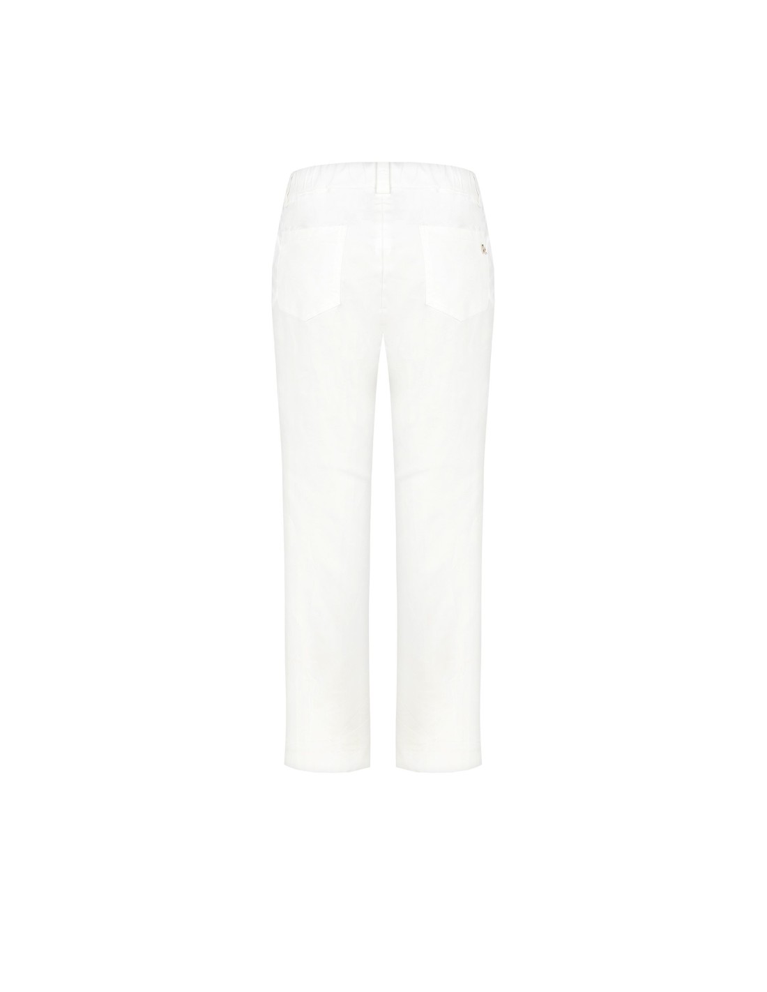 Calças de corte recto e confortáveis, em tecido elastizado de toque compacto e liso que acompanha a silhueta com naturalidade. O fecho com botão joia e os bolsos oblíquos adicionam um toque cuidado. Perfeitas para o escritório e para looks do dia a dia com charme essencial.