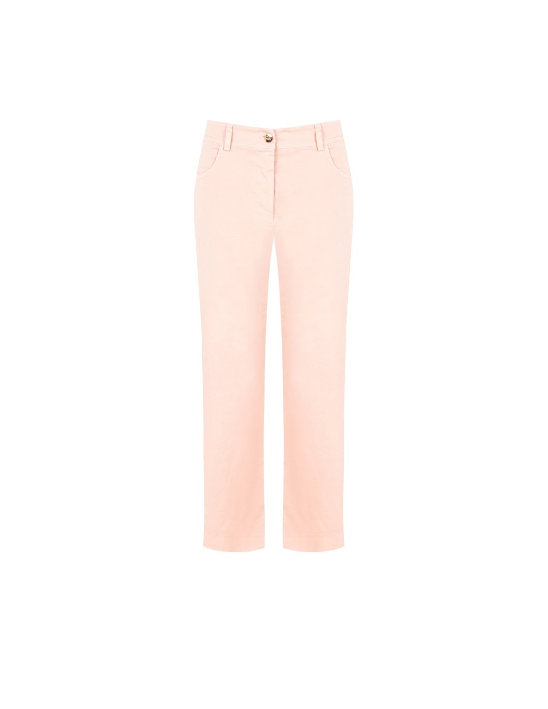 Calças de corte recto e confortáveis, em tecido elastizado de toque compacto e liso que acompanha a silhueta com naturalidade. O fecho com botão joia e os bolsos oblíquos adicionam um toque cuidado. Perfeitas para o escritório e para looks do dia a dia com charme essencial.