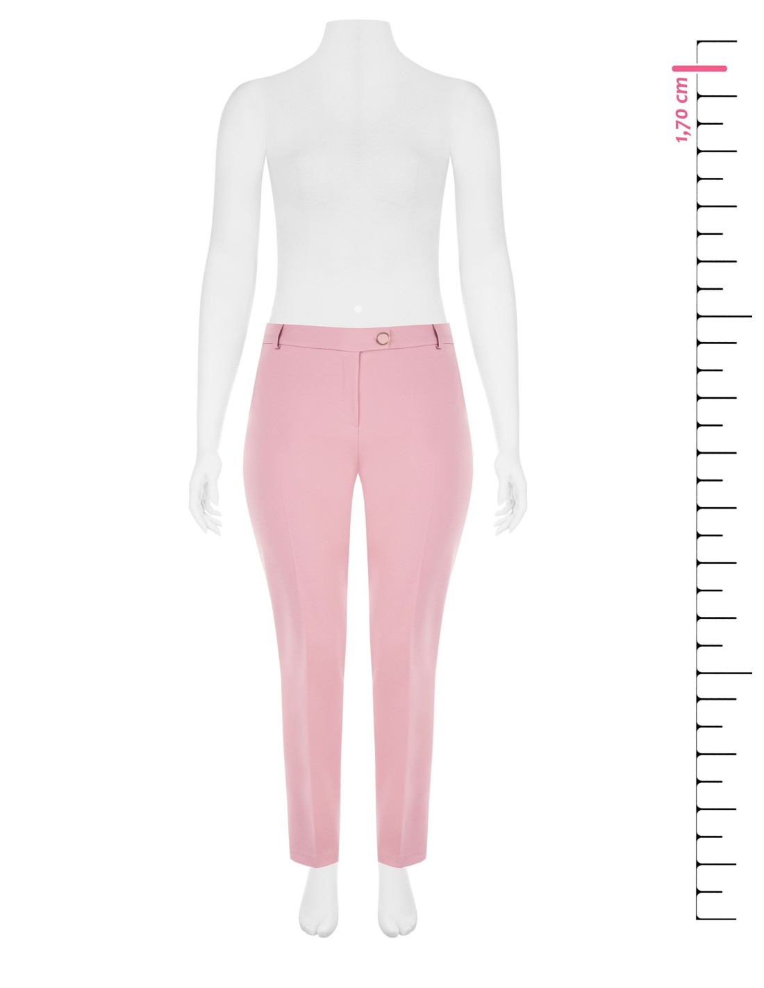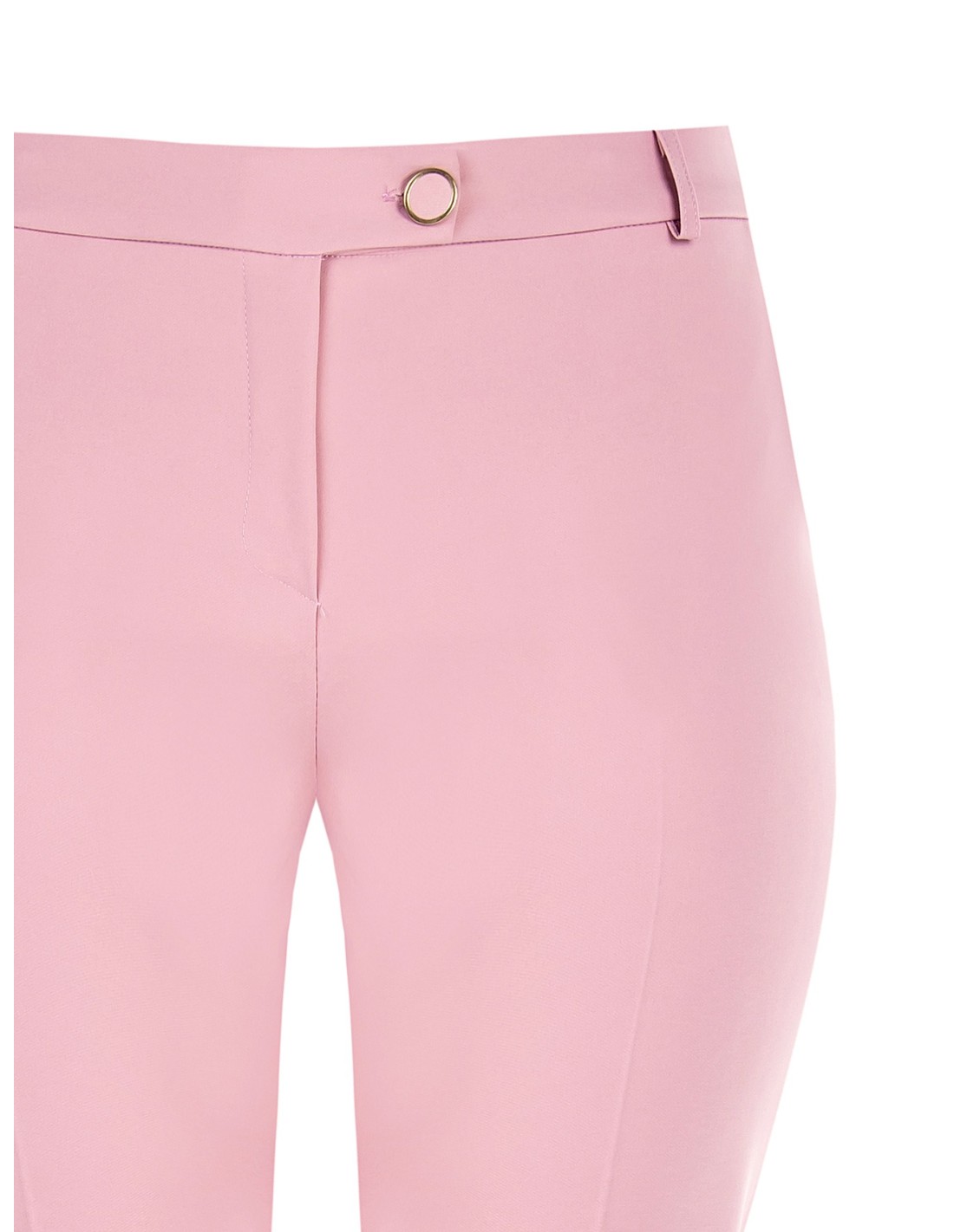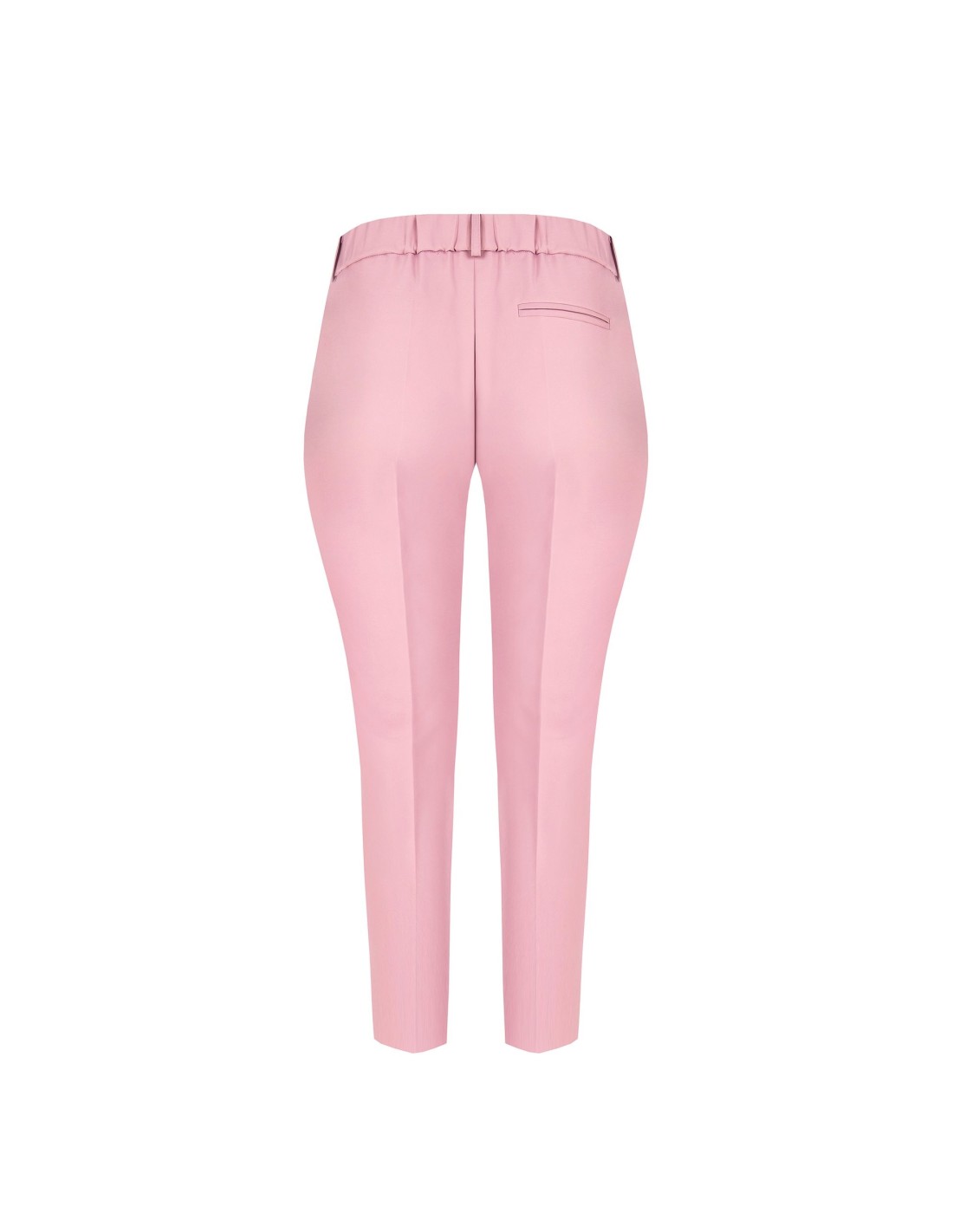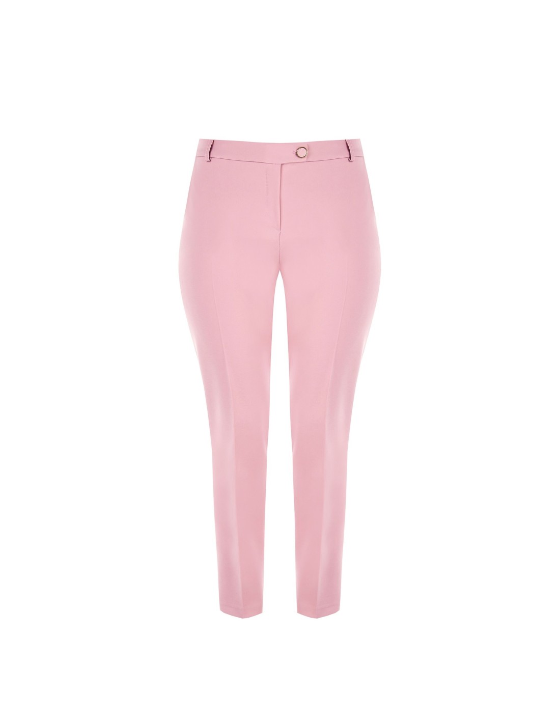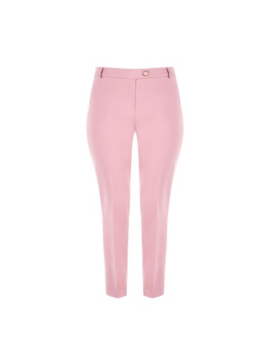 Calças de corte justo, confortáveis na cintura graças ao elástico nas costas. O tecido técnico leve e elástico esculpe a silhueta sem apertar. Pormenores: prega engomada e botão com jóias na cintura. Versáteis, do escritório aos aperitivos, podem ser combinadas com blazers ou malhas suaves para looks curvilíneos impecáveis.