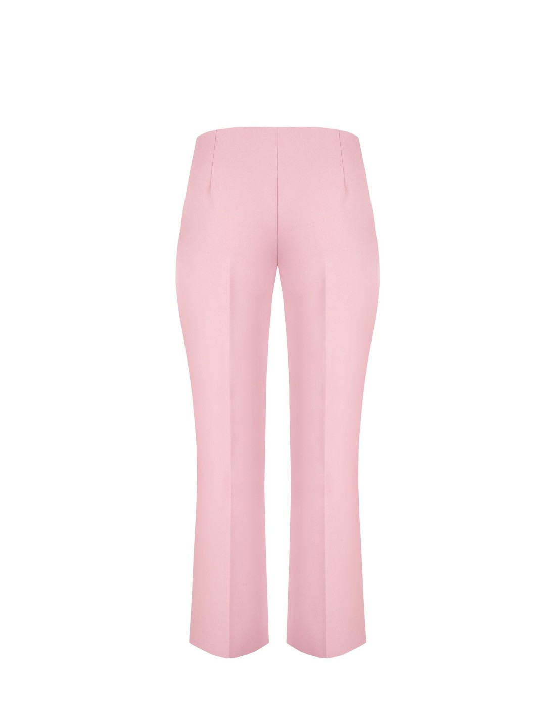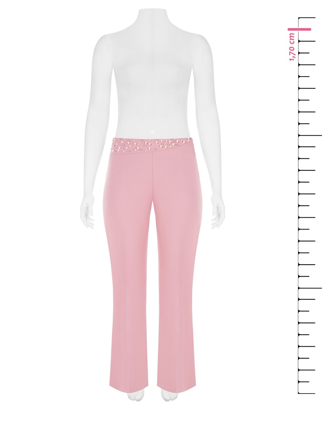 Calças de perna larga com um corte suave e fino. Crepe de mergulho fluido e elástico para conforto e fixação da silhueta. Cós moldado embelezado com pérolas e micro tachas; cintura limpa sem fechos para uma linha contínua. Perfeito para o escritório com um blazer ou para eventos noturnos com um top brilhante.